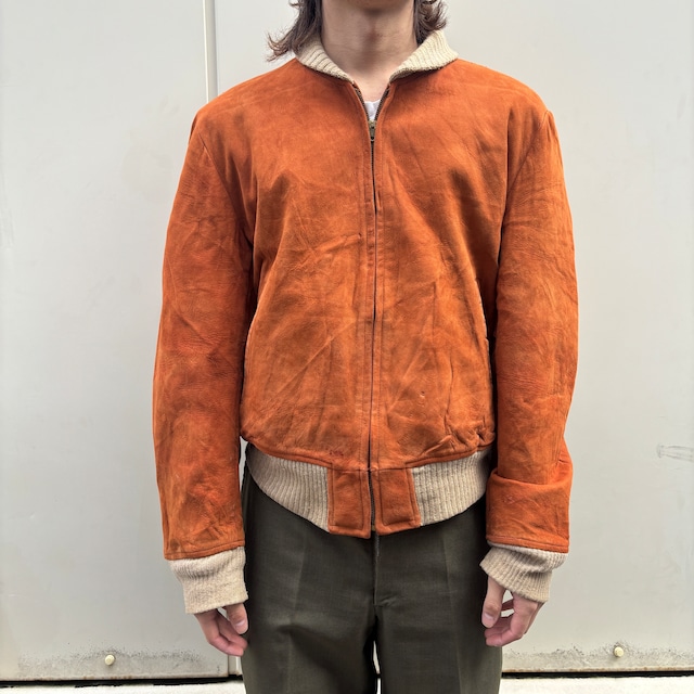 50s USA製 McGregor マクレガー レザー スウェード スポーツジャケット 44表記 ヴィンテージ ヘチマリブ襟 ショールカラー オレンジ 60s