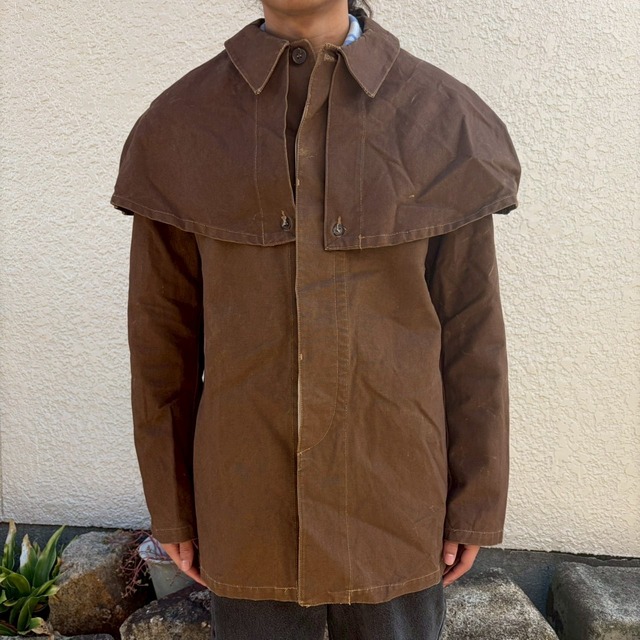 ■ 50s Sears J.C.Higgins Hunting Jacket ■ 1950年代 USA製 シアーズ J.C.Higgins ヴィンテージ ハンティングジャケットです。 アメリカ三大ブランドの1つシアーズが展開していたスポーツ用品ブランド J.C.Higgins製。 襟がコーデュロイになっており、ハンティングジャケット特有のシルエットで、50.60年代特有のディテール、さらっと羽織るだけで雰囲気の出るアイテムです。 菱形CONMARジップ。CONMATICジップ。 いかがでしょうか。 マテリアル : コットン コンディション : 所々に汚れ、バックに脱色、右腰辺りにリペア跡がございますが、着用に問題のあるダメージはございません。 サイズ : L相当 着丈 : 78cm 身幅 : 67cm 肩幅 : 49cm 袖丈 : 68cm 251221 店頭N