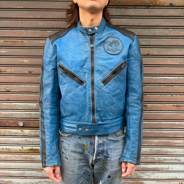70s Furygan フュリガン フランス フレンチ ライダースジャケット ヴィンテージ レザー レーシング モーターサイクル ブルー ロンジャン M