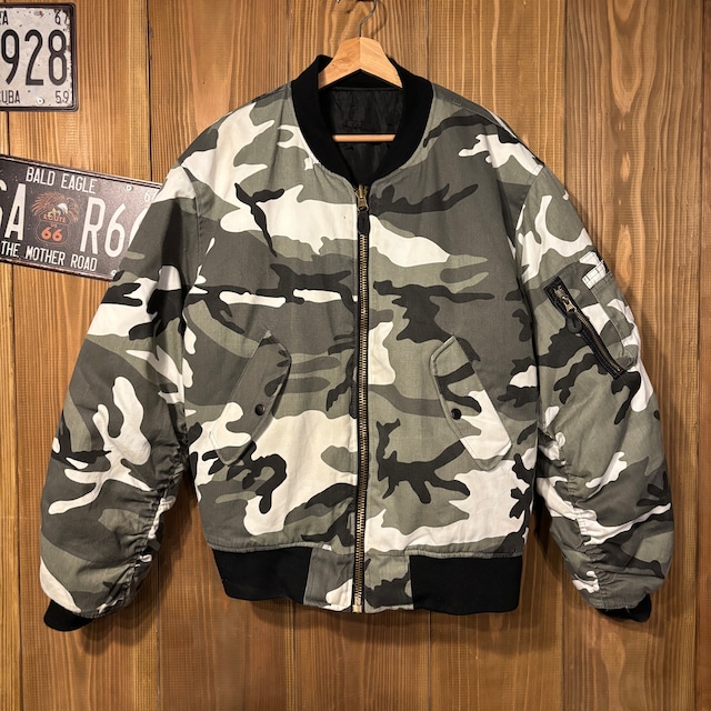 00s MA-1 フライトジャケット モノクロ 迷彩 ミリタリー ブルゾン XL リバーシブル ブラック 米軍 ナイロン ミリタリージャケット ボンバー