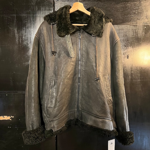 USA製 B-3 フライトジャケット US Army 米軍 オールブラック ムートン シープスキン L表記 ヴィンテージ ミリタリー フードtype 空軍