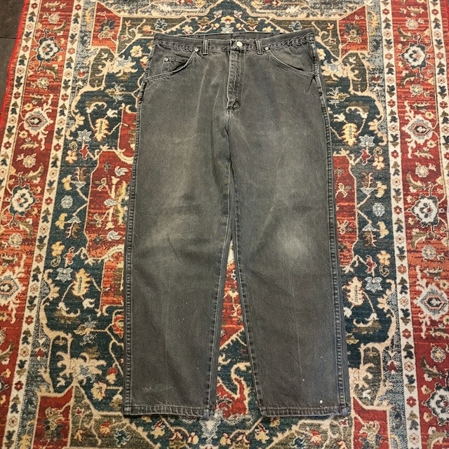 ■ 90s Wrangler Black Denim Pants ■ 1990年代 ラングラー ブラックデニムパンツ ゴールデンサイズが入荷いたしました! 色の残りも良い程度な一本です。 マテリアル : コットン コンディション : 裾辺りにペンキ飛びがございますが、着用に問題あるダメージはございません。 サイズ : W36 L30 ウエスト88cm 股上32cm 股下70cm 腿幅31cm 裾幅19cm 251208 3階 壁箱 ③