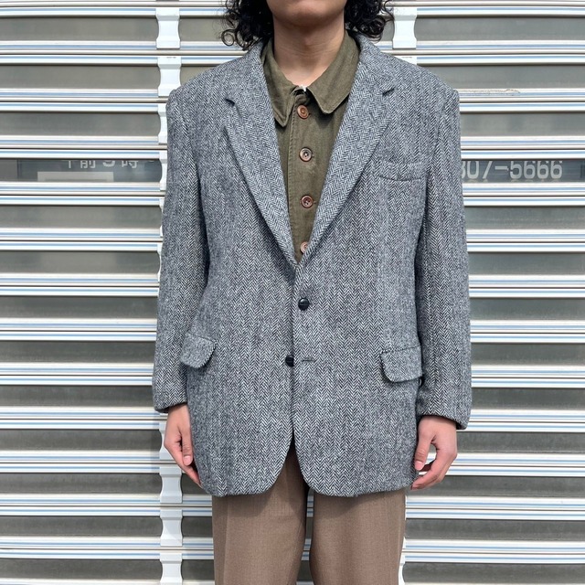 80s カナダ製 Harris Tweed ヘリンボーン ハリスツイード テーラード L ジャケット ブレザー アメリカ古着 ツイード 英国 Wネーム