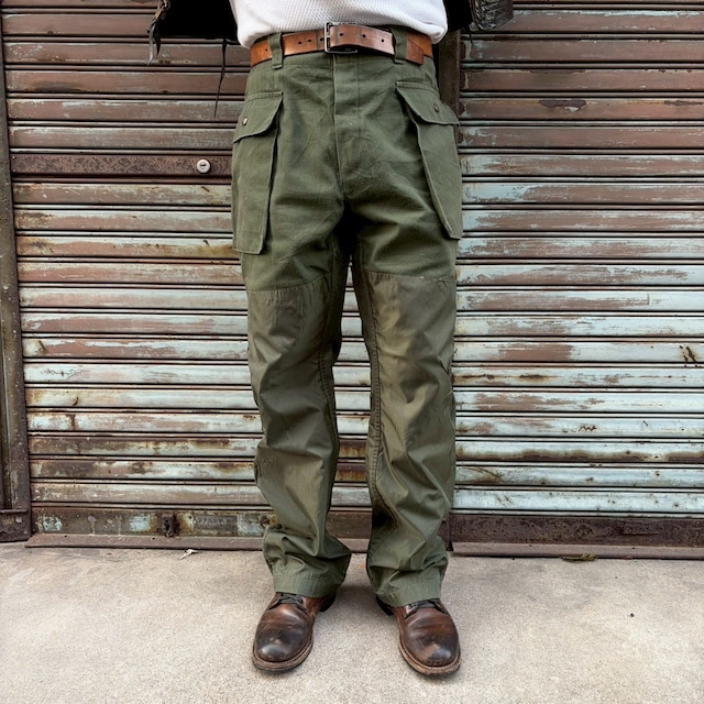 ■ Euro Vintage Hunting Pants ■ ユーロ ヴィンテージ ダブルニー ハンティングパンツ。 太く良いシルエットのダブルニーハンティングパンツ、ポケットも大きく、使いやすい色味のアイテムです。 いかがでしょうか。 マテリアル : コットン ナイロン コンディション : ヒップにやや破れ、リペアがございますが、着用に問題あるダメージはございません。 サイズ : M相当 ウエスト : 86cm 股上 : 31cm 股下 : 73cm 腿幅 : 35cm 裾幅 : 26cm 251214 G 3階