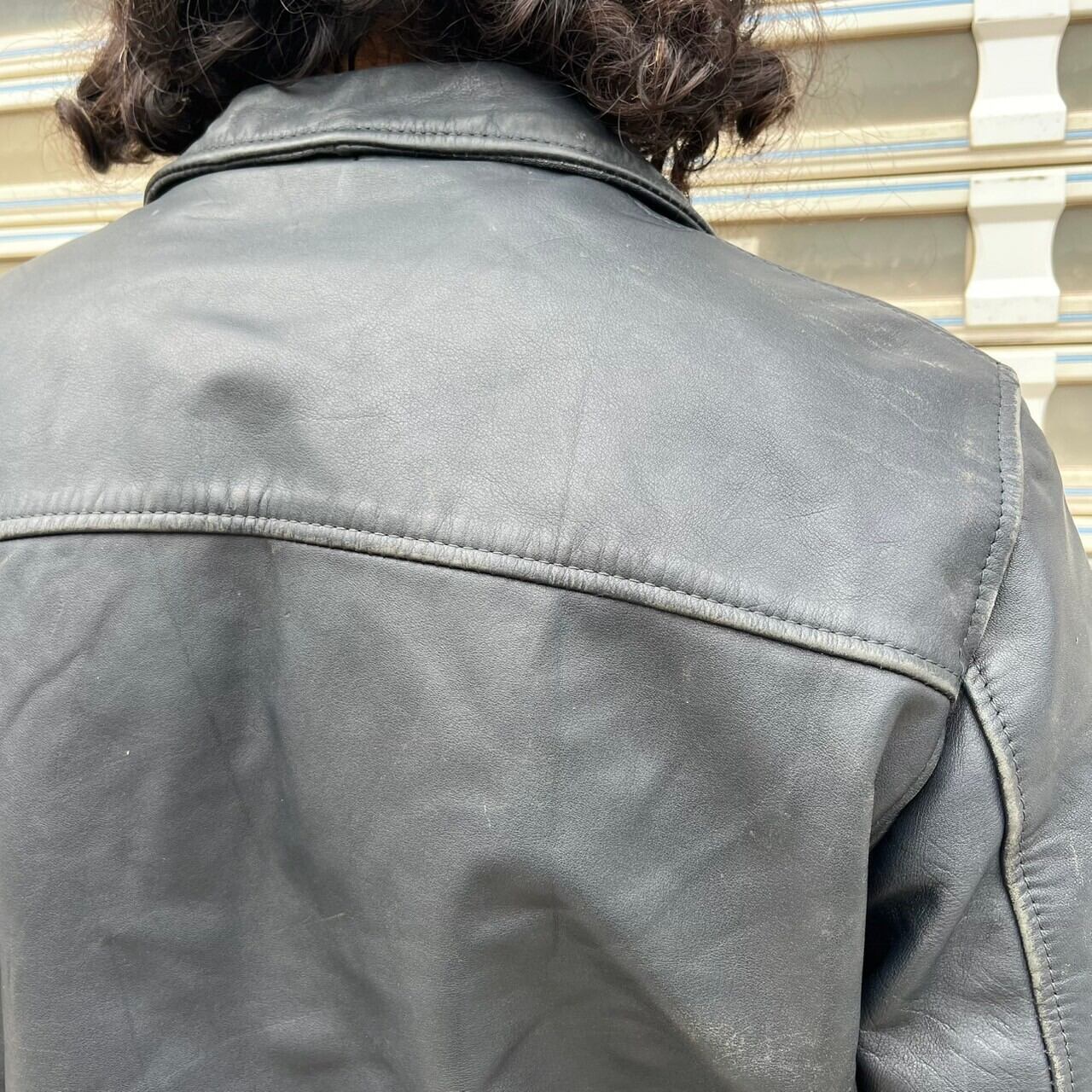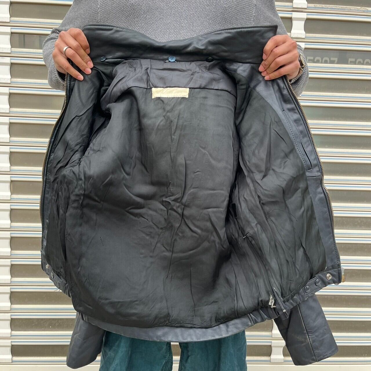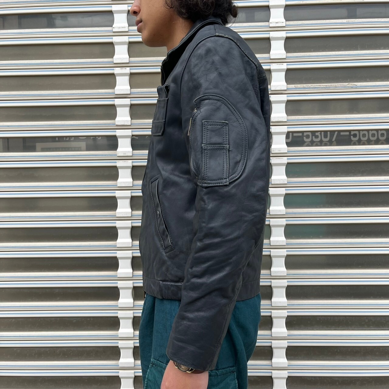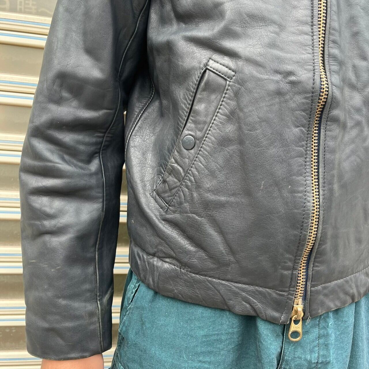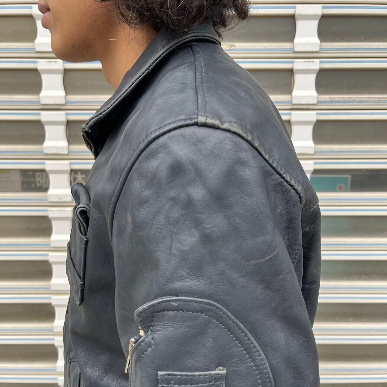 80s フランス軍 民間 ヴィンテージ パイロット レザー ミリタリー M フライトジャケット イギリス軍 ライダース 羊革 ネイビー 軍物 70s