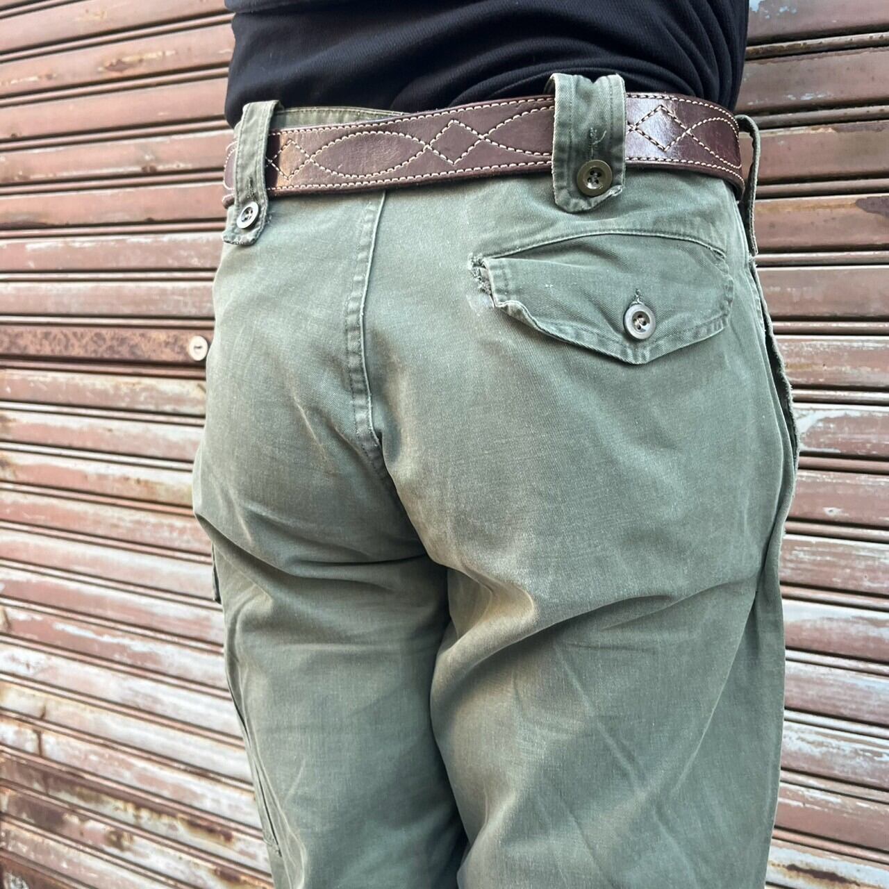 70s ベルギー軍 実物 M64 カーゴパンツ ユーロ ヴィンテージ M ミリタリー フィールドパンツ ワーク 緑 グリーン オリーブ W80cm M-64 80s