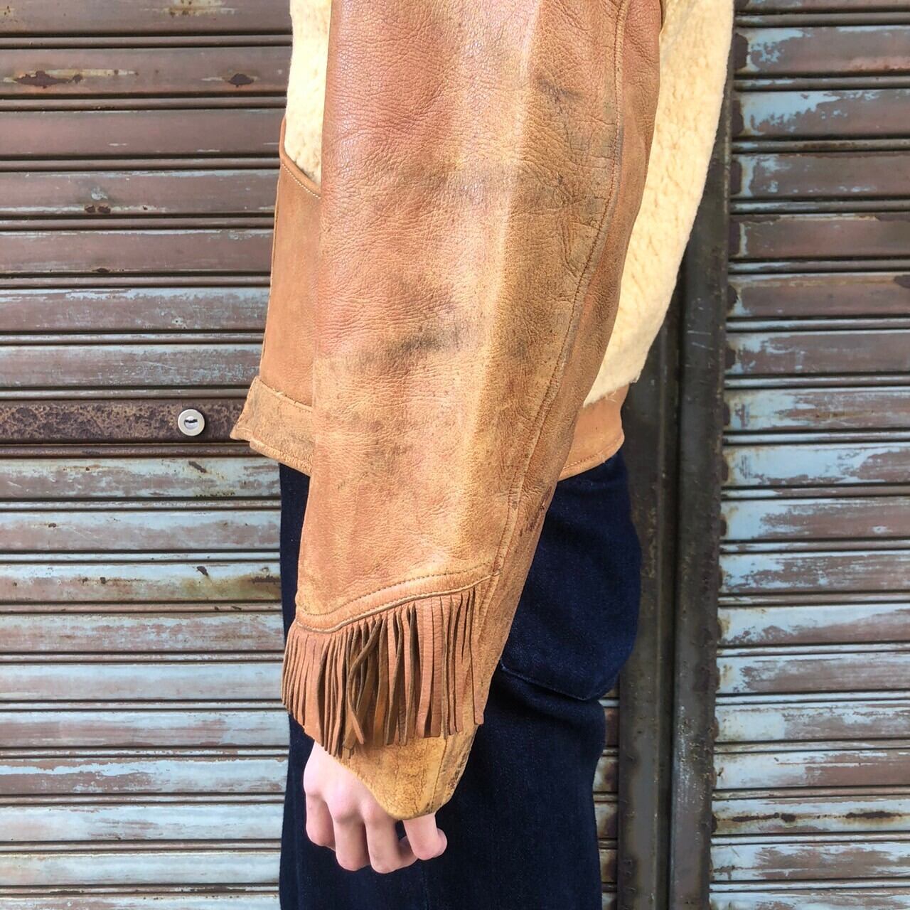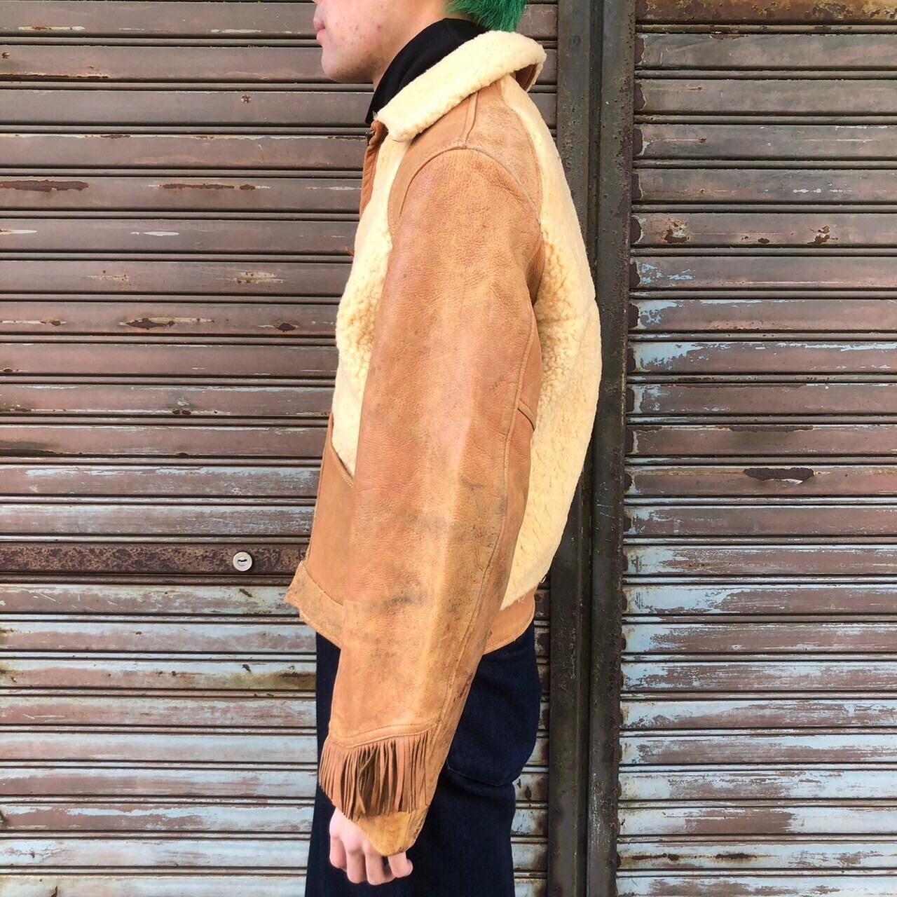 貴重 60s USA 熊ジャン ヴィンテージ グリズリージャケット レザー TALON オリジナル ムートン ブラウン フリンジ 50s Sサイズ ライダース