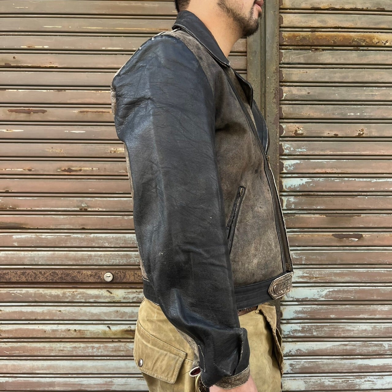 ここまで綺麗に色落ちし、切り替えしされたヴィンテージのレザージャケットはなかなか出てこないかと思います。