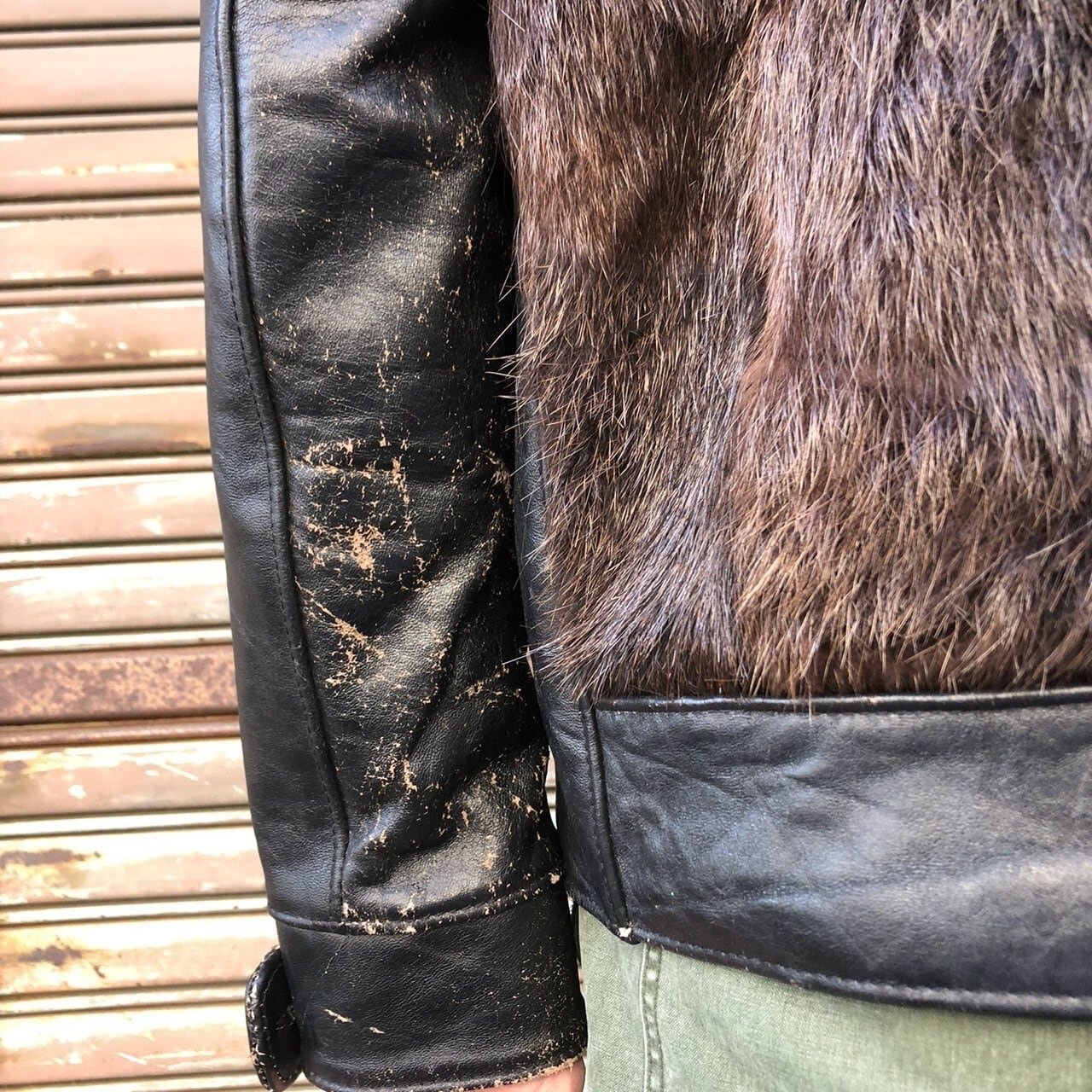 1940〜50年代のヴィンテージレザーを解体して再構築して作ったグリズリージャケット。