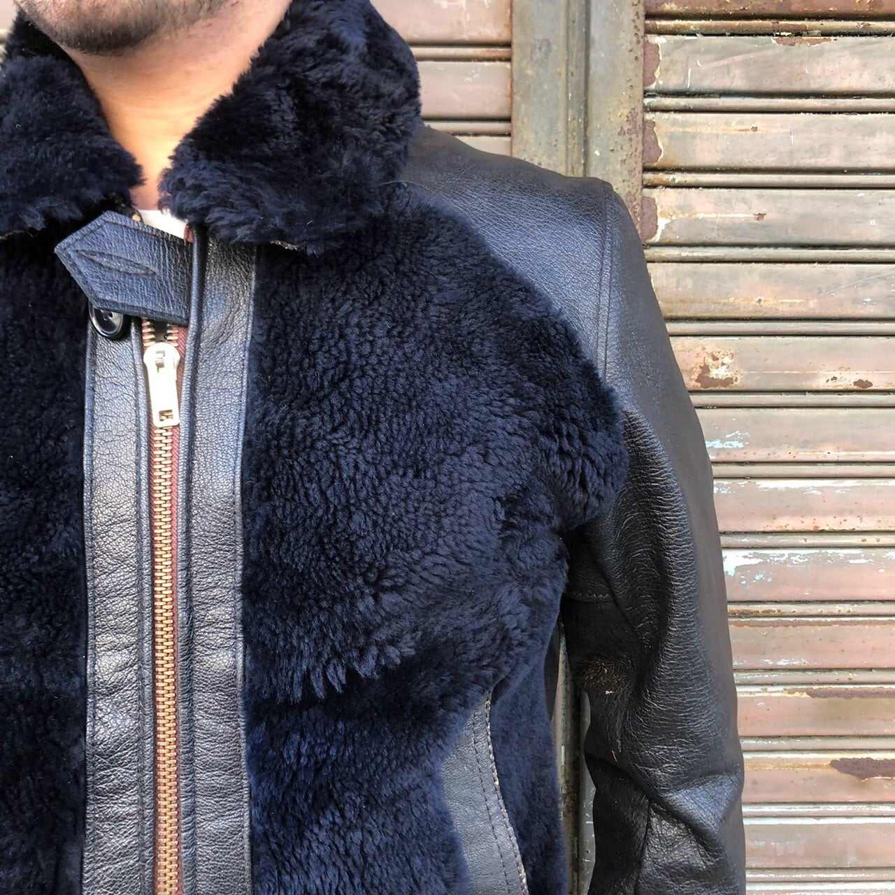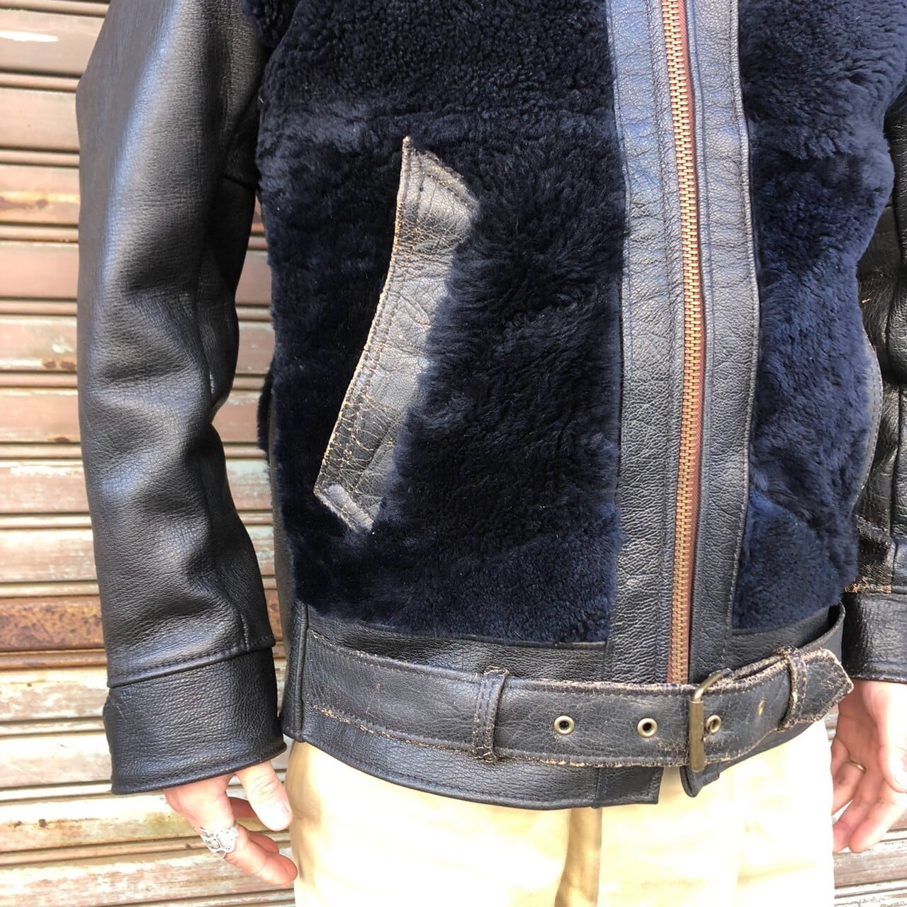 Vintage Leather Grizzly Jacket 再構築 熊ジャン ヴィンテージ グリズリージャケット レザー ムートン 40s 50s ライダース 42 ジッパータイプ ネイビー