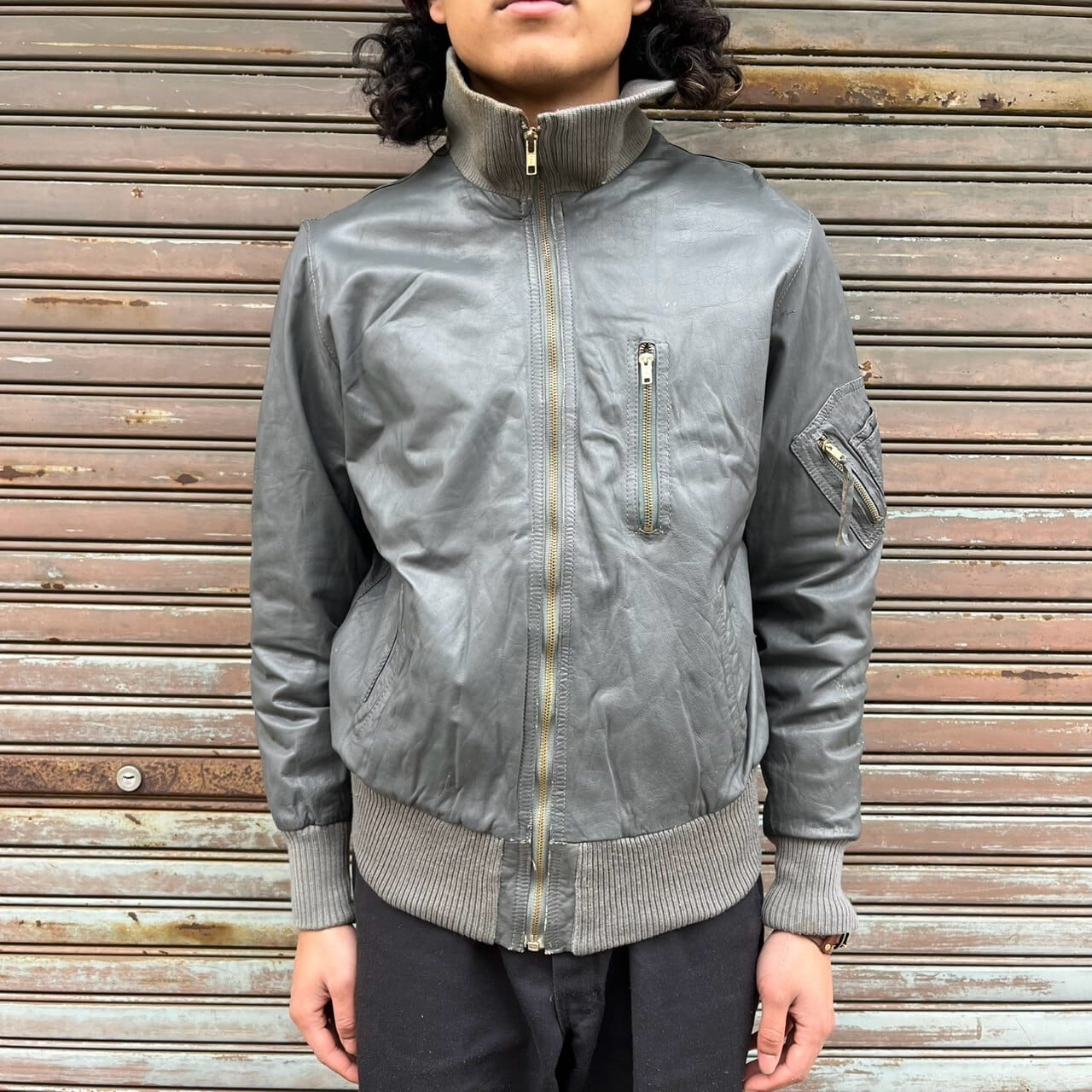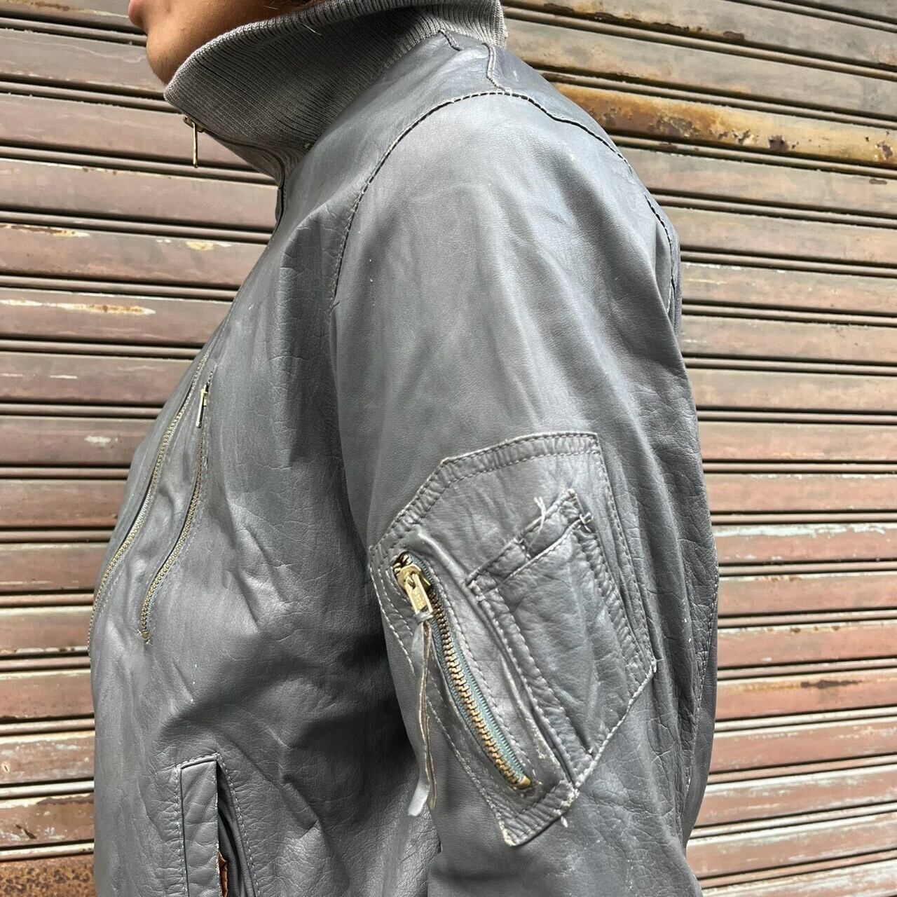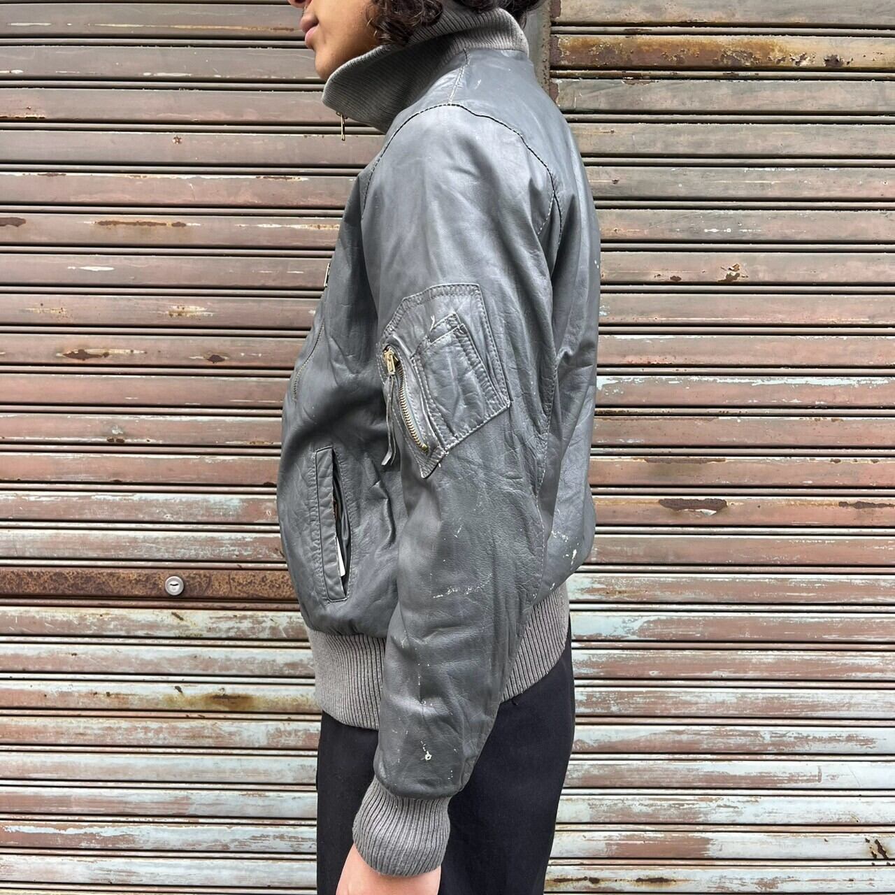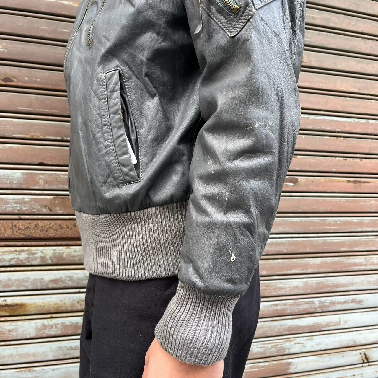 80s ドイツ軍 民製品 パイロットレザー フライトジャケット ユーロ 56 レザージャケット ミリタリー ヴィンテージ ライダース グレー 70s