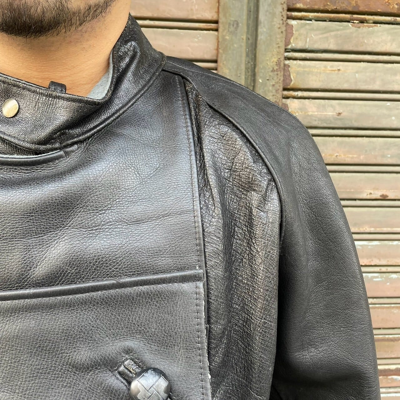 スウェーデン軍 モーターサイクルジャケット レザージャケット ブラック L 黒 ライダースジャケット ヴィンテージ ユーロ ミリタリー 本革