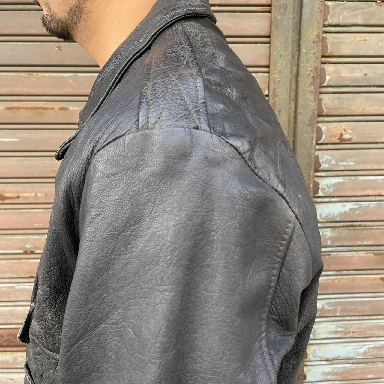 50s USA製 アドミラル レザージャケット A-2 フライトジャケット ブラック L ポリスマンジャケット ヴィンテージ 黒 ゴートスキン 60s