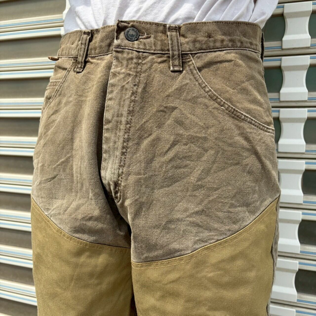 90s USA製 Wrangler ハンティングパンツ ダック地 ダブルニー W32 L34 ラングラー デニム ブラウン 切り替え Rugged wear コットン 80s