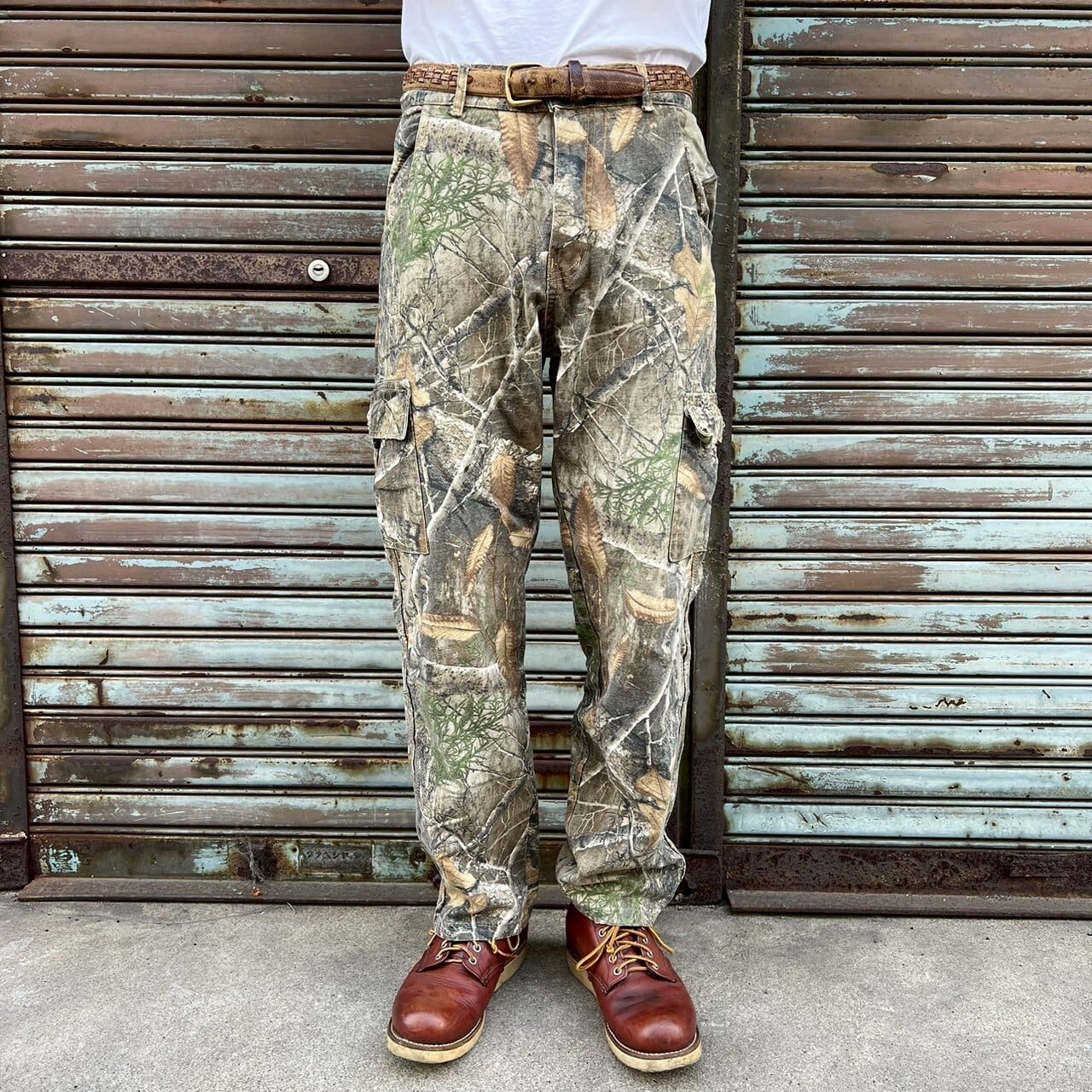 00s ツリーカモ カーゴパンツ デニムパンツ ハンティングパンツ 迷彩 W34 リアルツリー ダブルニー ミリタリー コットン ペインター 90s
