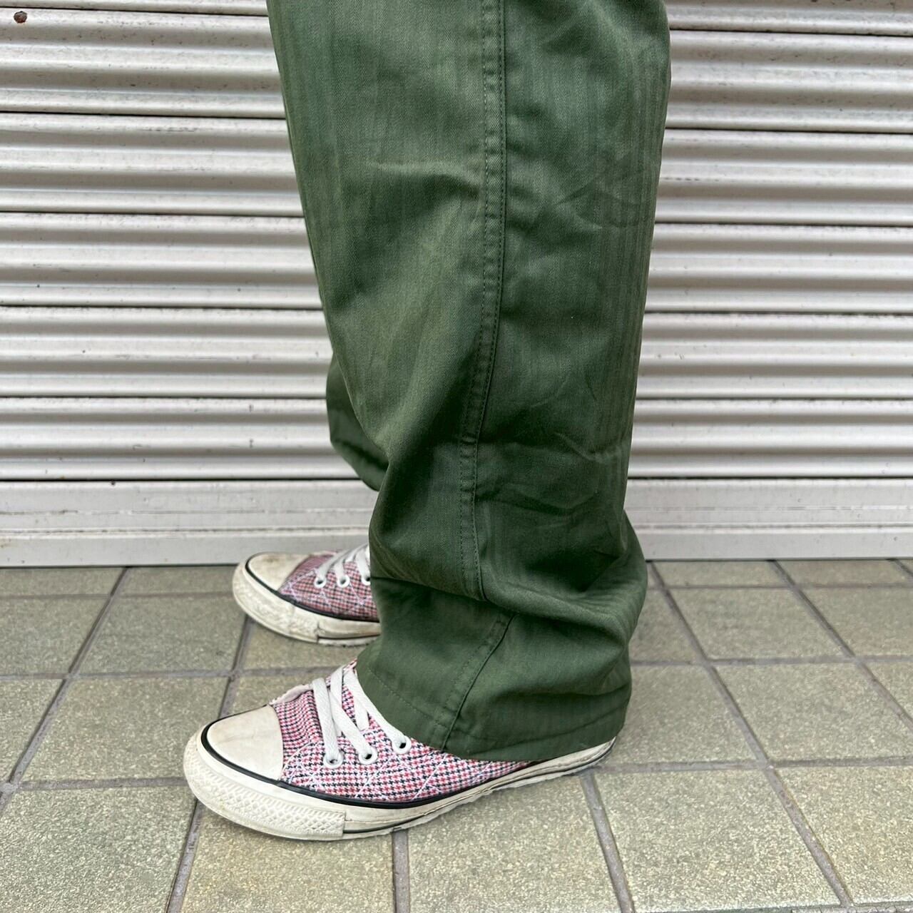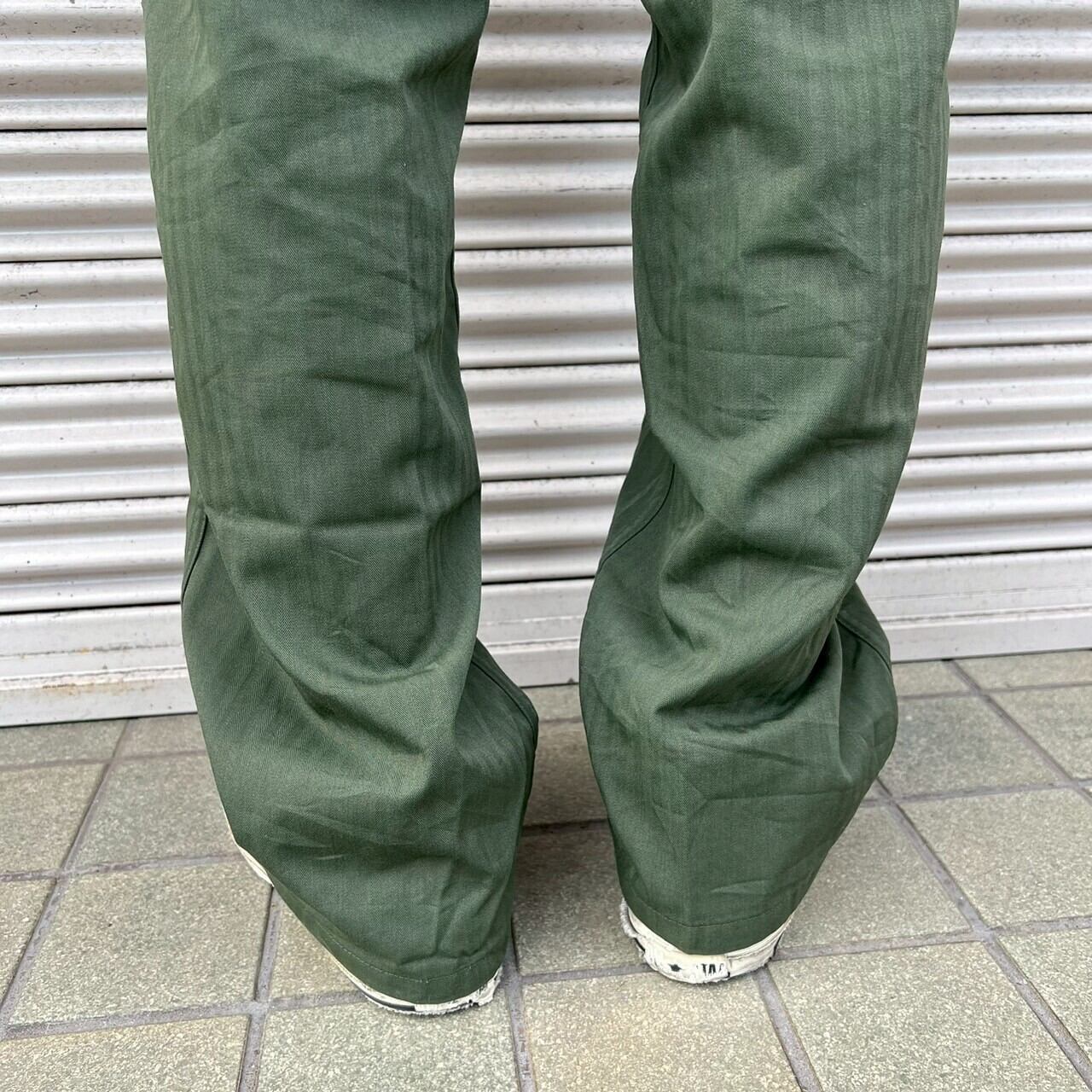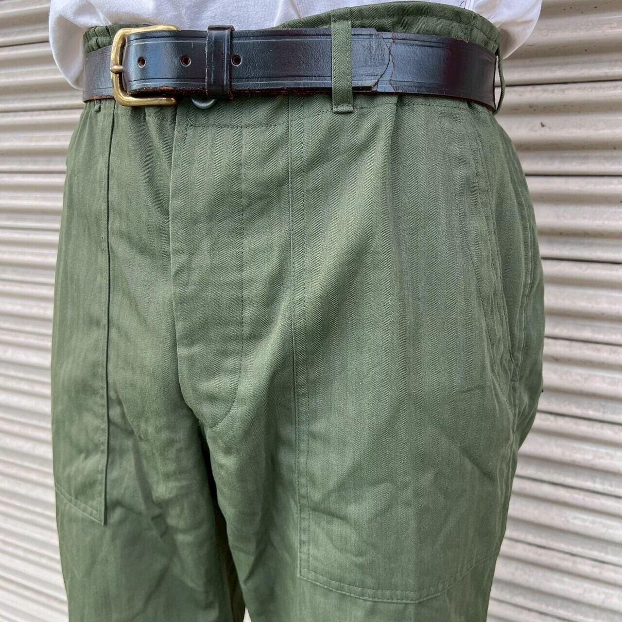80s 韓国軍 実物 ベイカーパンツ ヘリンボーン W86cm 6号 カーゴ ミリタリー ヴィンテージ コットン オリーブドラブ フィールドパンツ