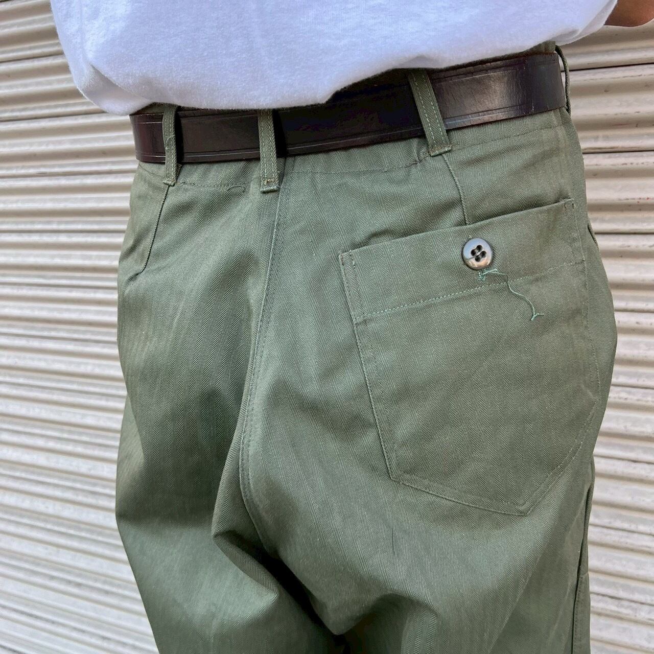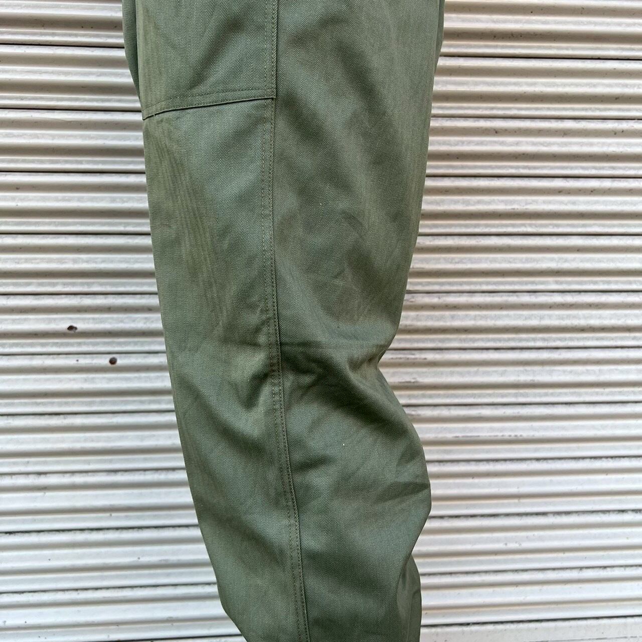 70s 韓国軍 実物 ベイカーパンツ ヘリンボーン カーゴパンツ ミリタリー W74cm ヴィンテージ コットン オリーブドラブ フィールドパンツ