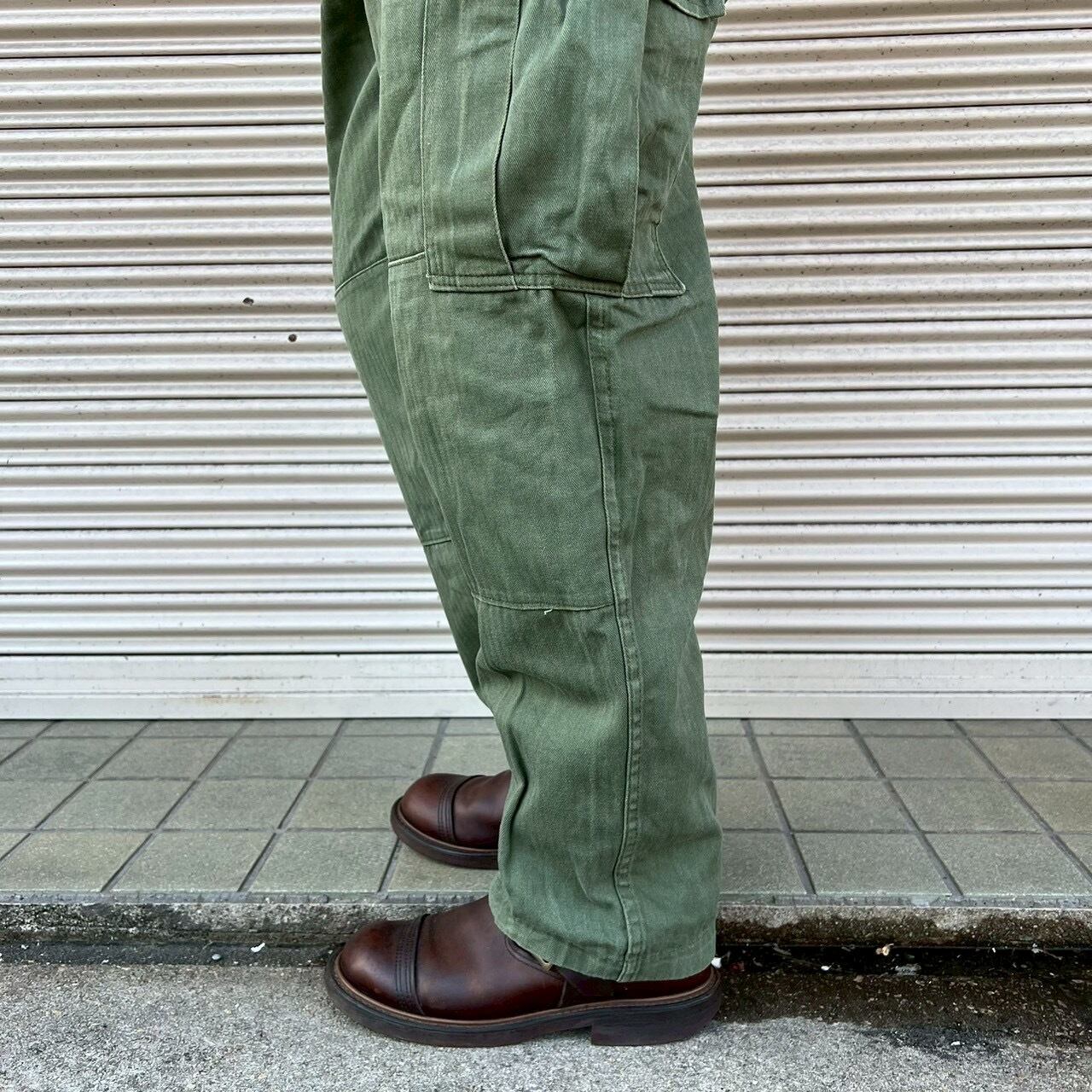 ユーロ ヴィンテージ カーゴパンツ ヘリンボーン ミリタリー フィールドパンツ ワーク 緑 オリーブ フランス軍 M-47 タイプ 民間 2XL 98cm