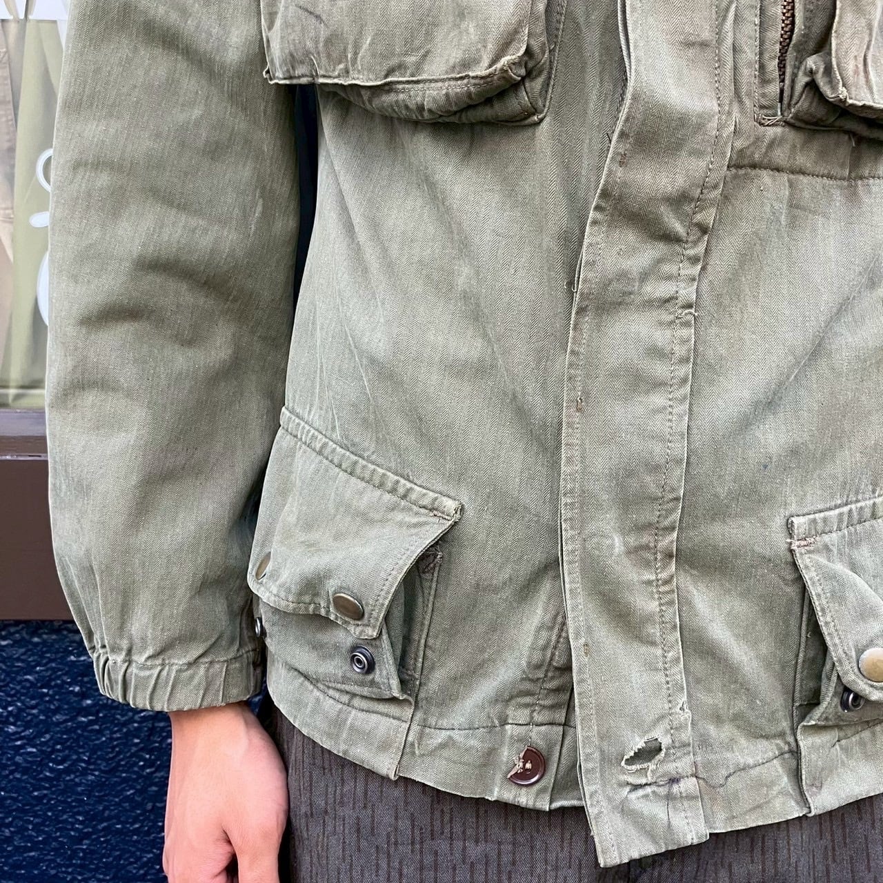 60s フランス軍 実物 TAP47 パラトルーパージャケット リメイク 短丈 M ユーロ ミリタリー ヴィンテージ ヘリンボーン 空挺部隊 50s