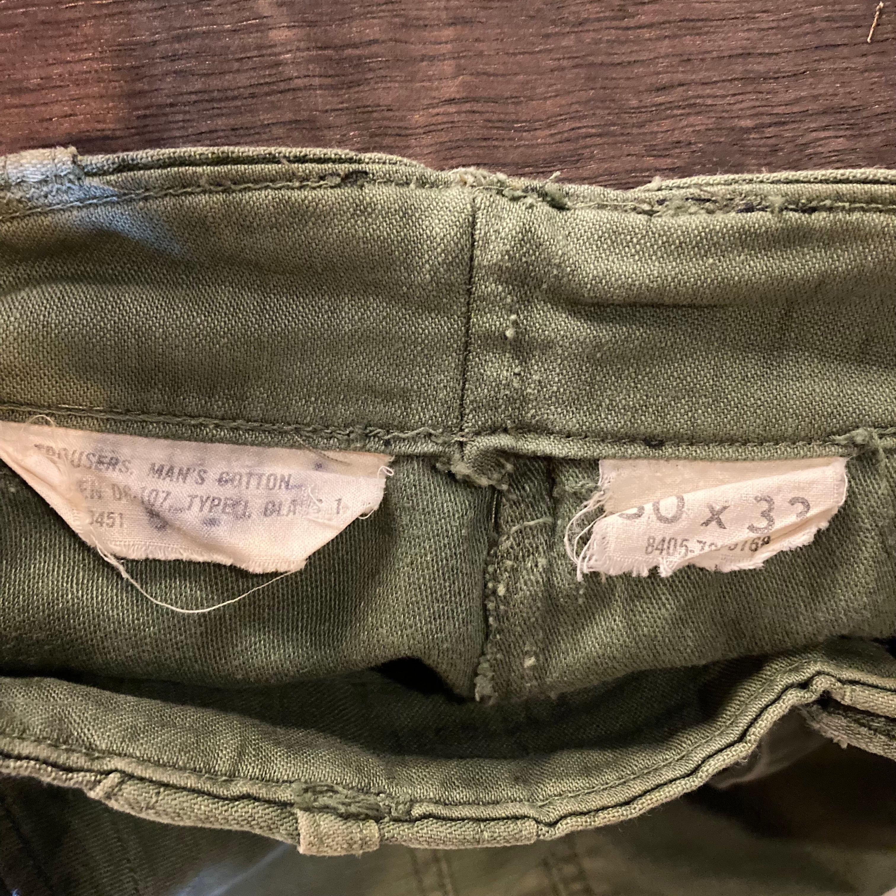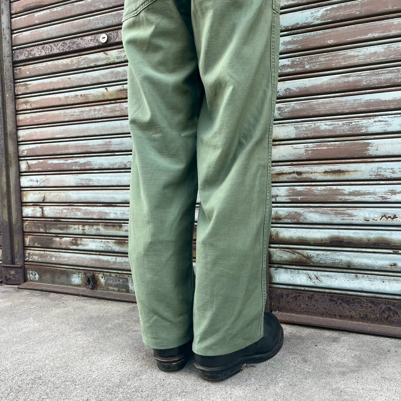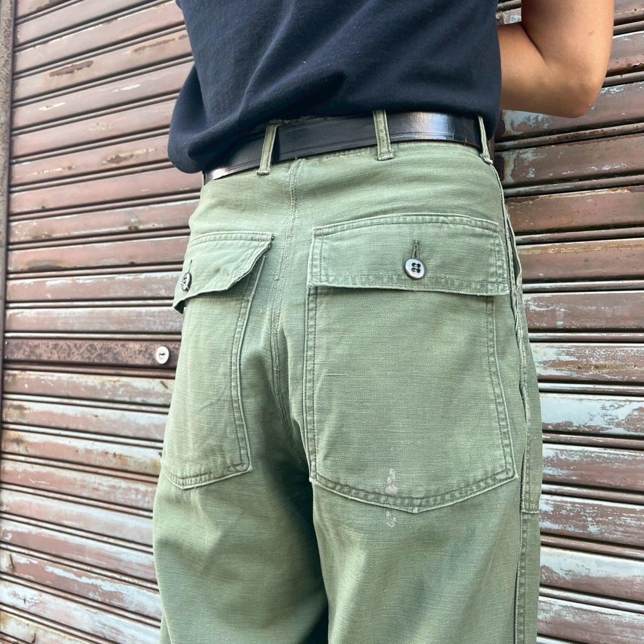60s 米軍 実物 ヴィンテージ ベイカーパンツ OG107 W30 L33 W72cm ミリタリー パンツ コットンサテン カーゴパンツ ボタンフライ 50s
