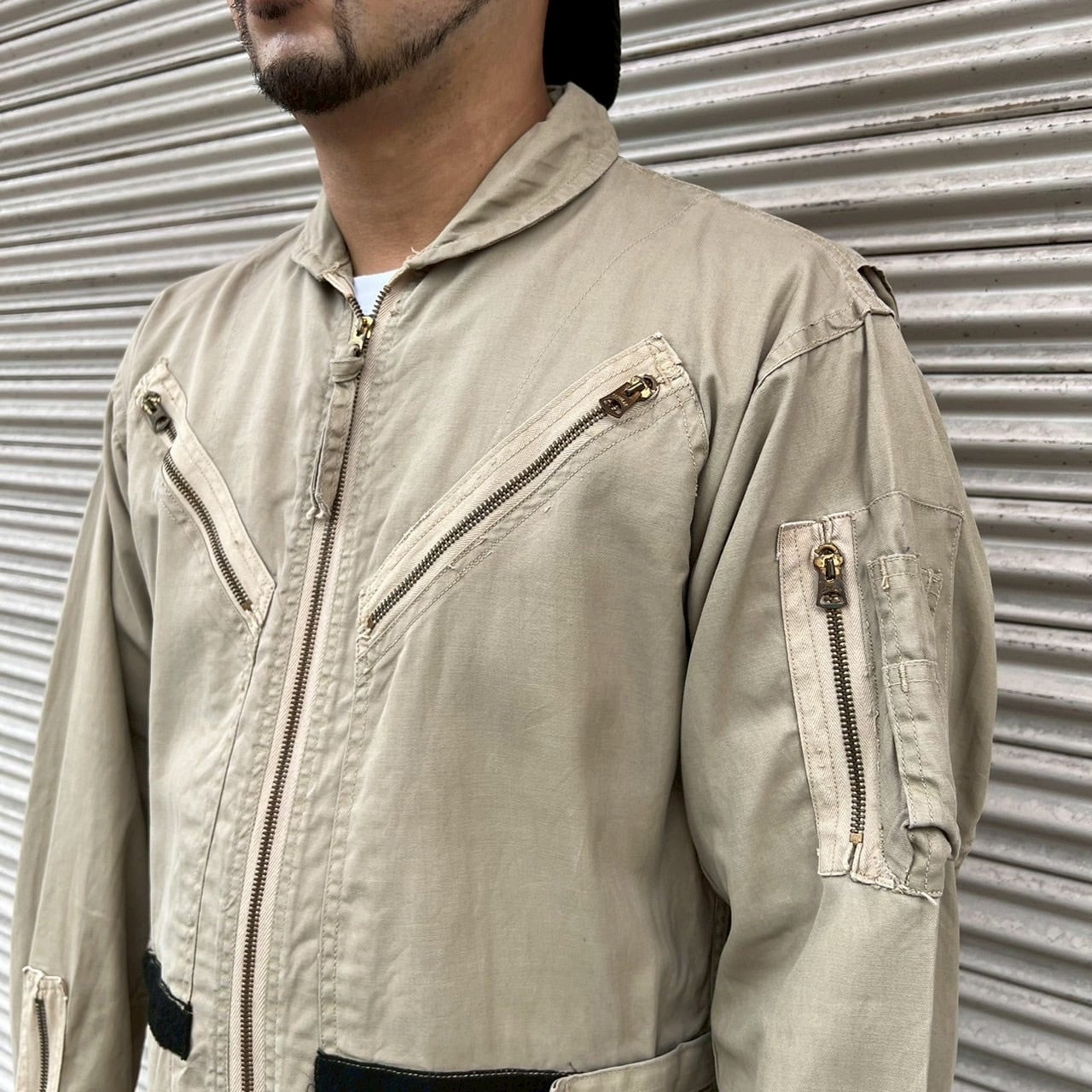 60s 米軍実物 U.S.NAVY サマーフライト スーツ ヴィンテージ ミリタリー ベージュ カバーオール オールインワン 50s フライトスーツ CWU 40