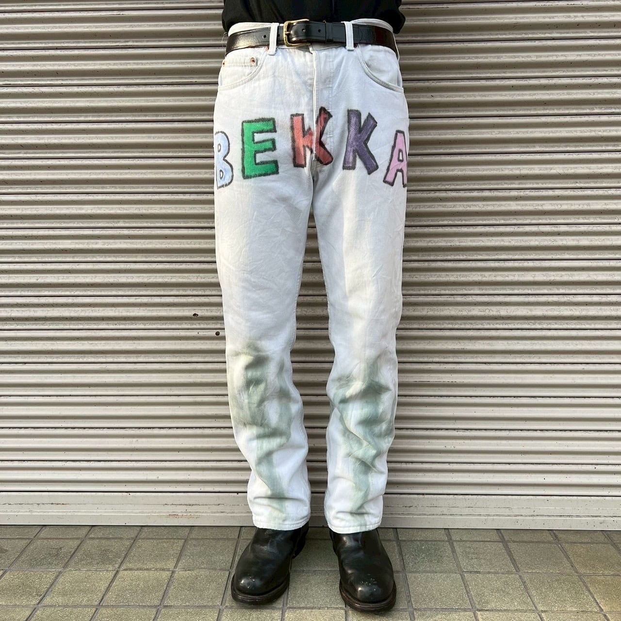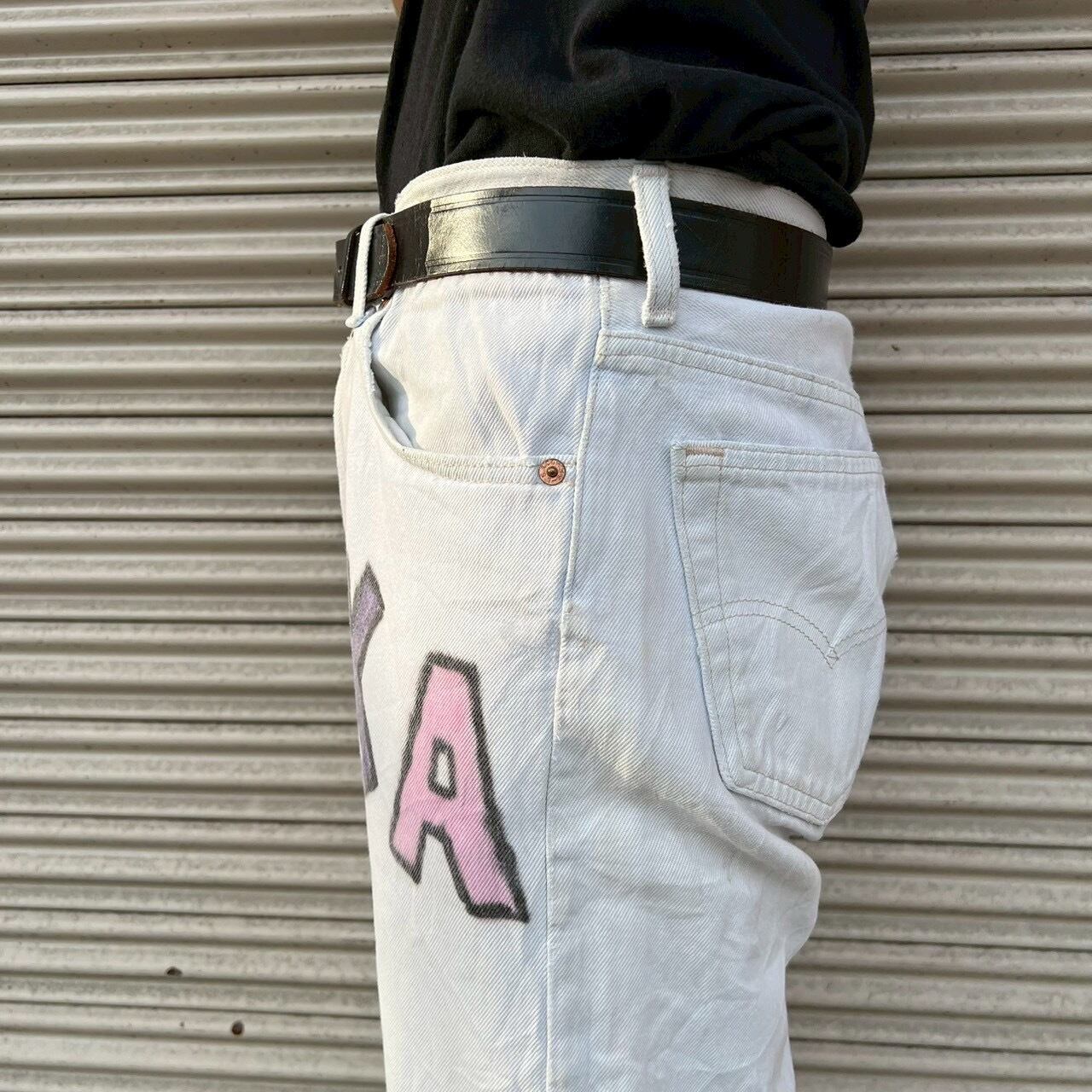 1990年代 USA製 リーバイス 501 ヴィンテージ ホワイト ハンドペイント デニムパンツ。