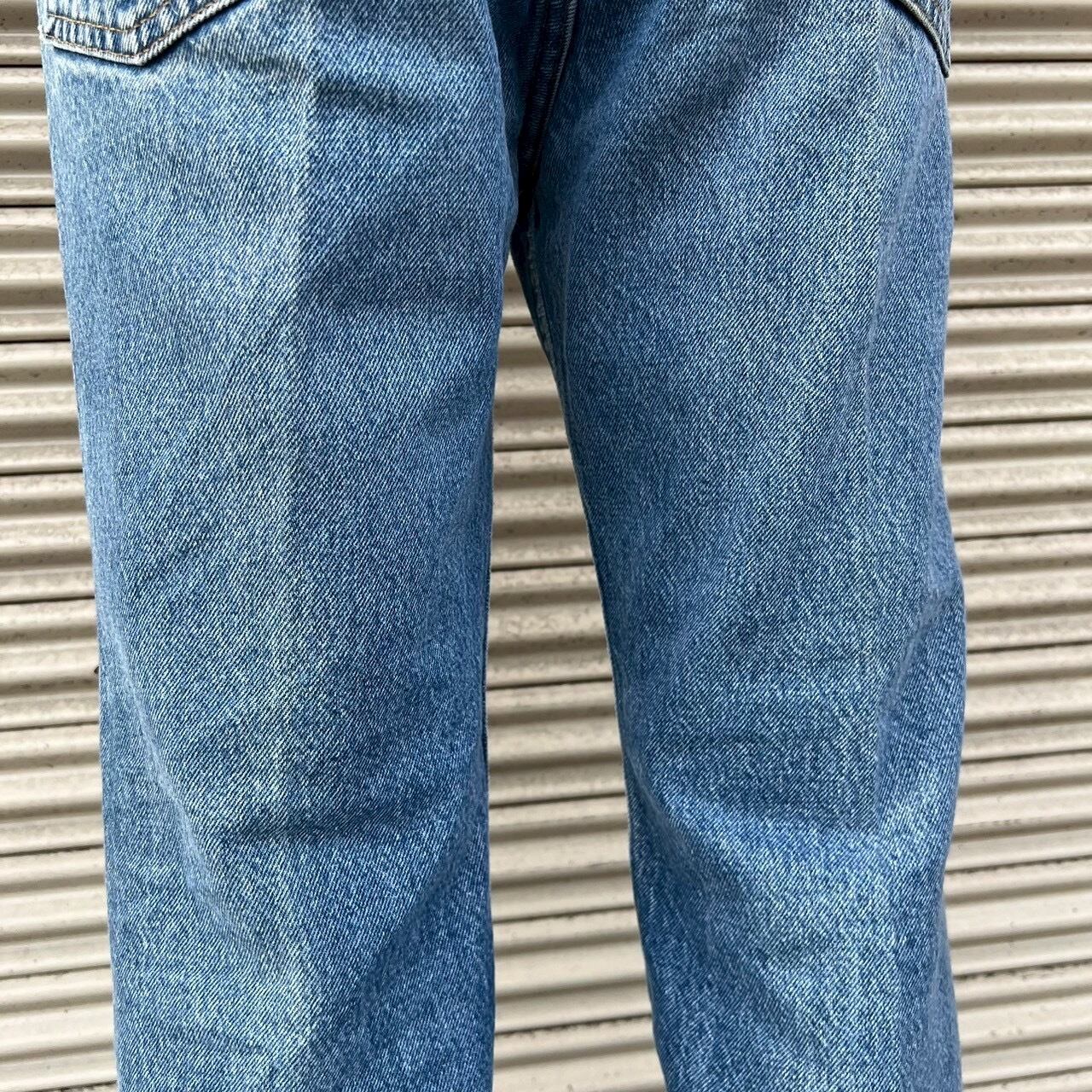 コンディション : 右腿、右脛、左脹脛にリペア跡がございます。左腿外側、左バックポケット、裾にダメージがございますが、着用に問題あるダメージはございません。