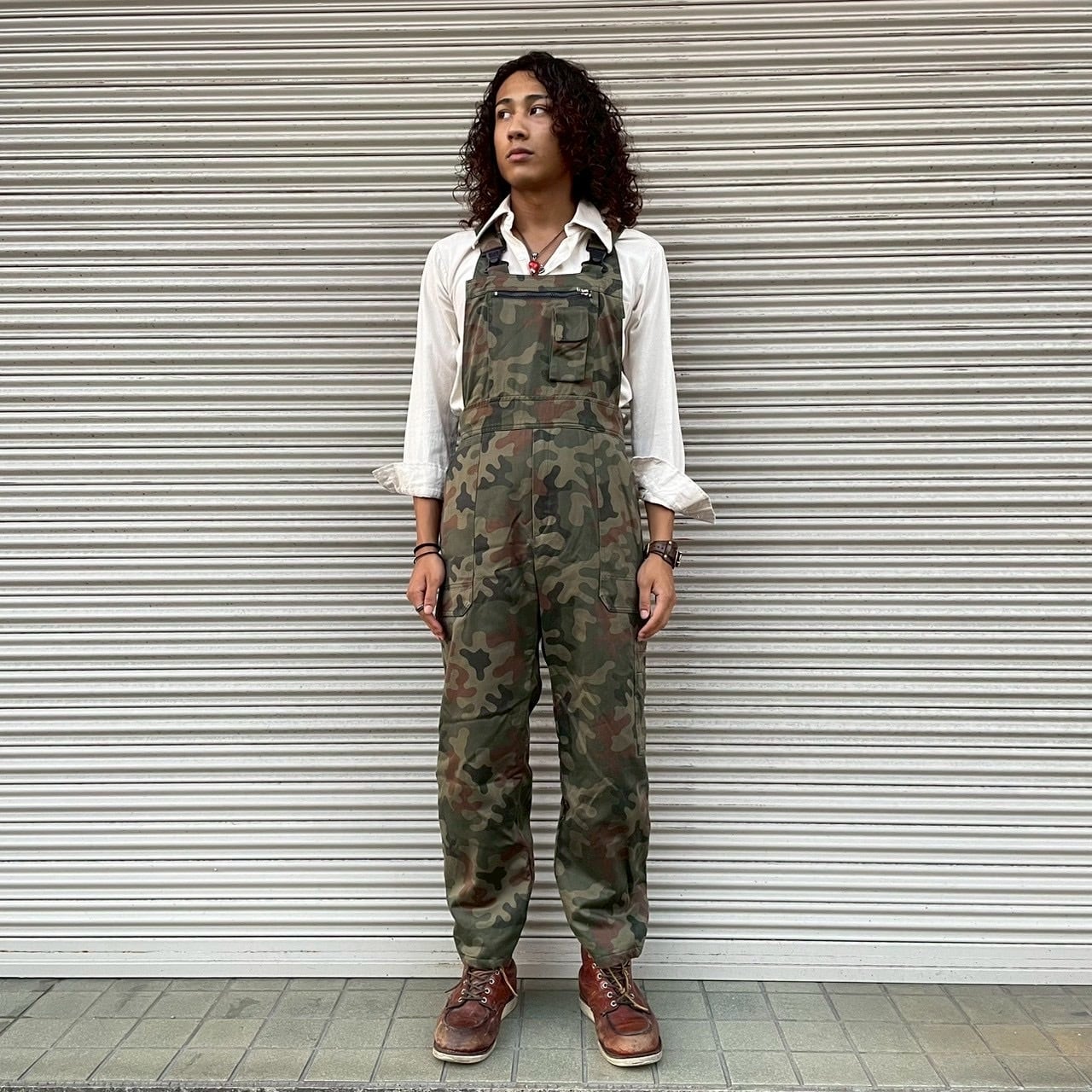 90s ポーランド軍 実物 パンテラカモカーゴパンツ 迷彩 カモフラ オーバーオール ヴィンテージ ミリタリー デッキパンツ タンカース
