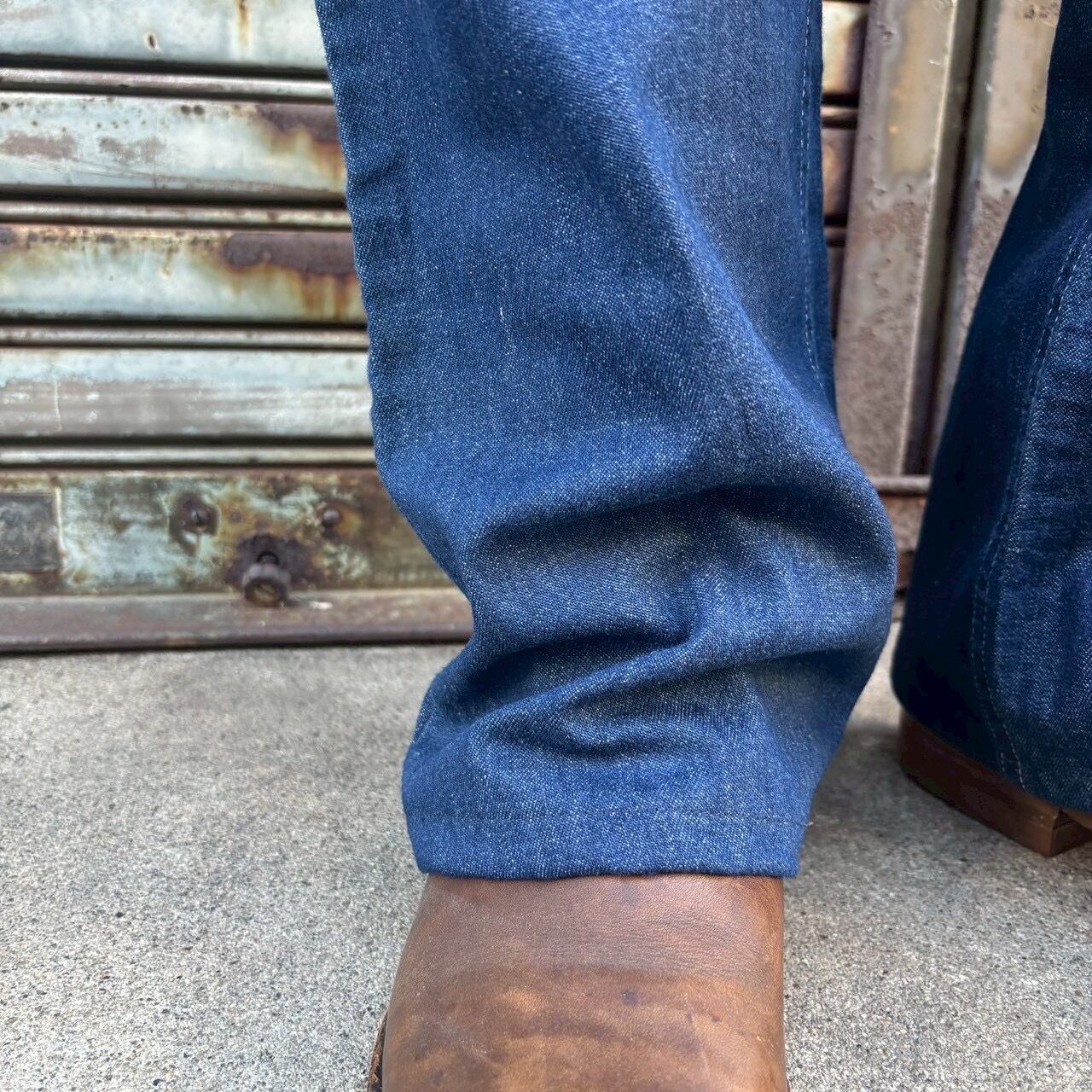 裾にかけて自然に落ちるラインはブーツとの相性も良く、クラシックなアメリカンスタイルを感じさせます。