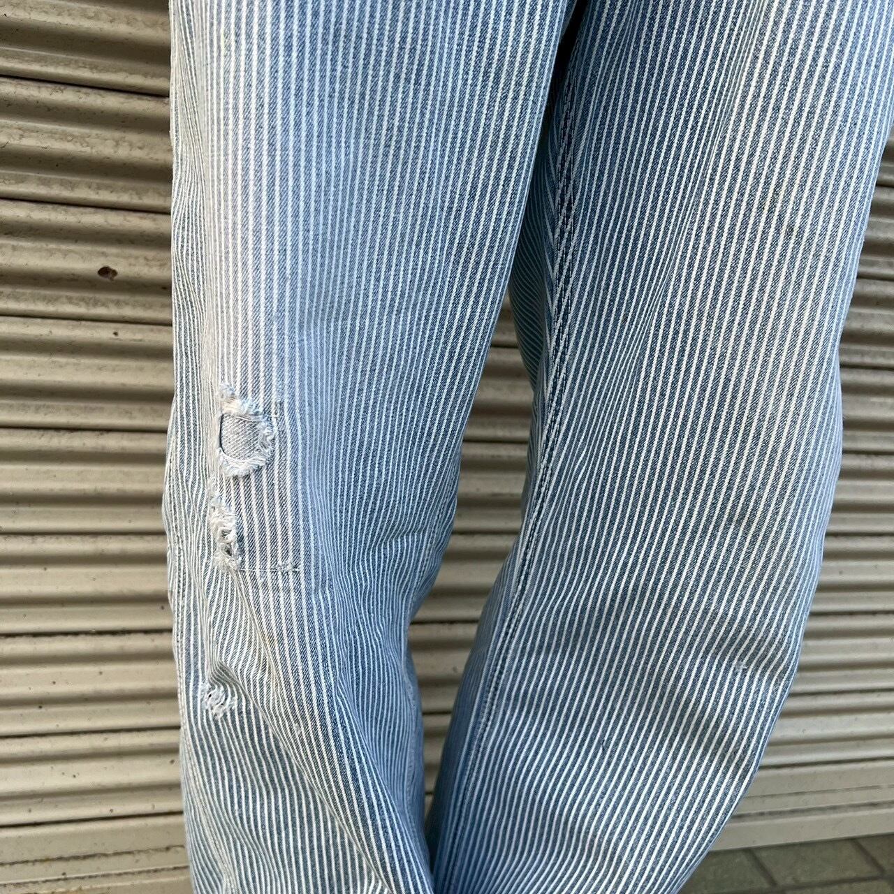 コンディション:フロント右足に4箇所程度直径2cmのダメージがある状態です。左尻ポケットに染み汚れかございます。着用に問題あるダメージはございません。