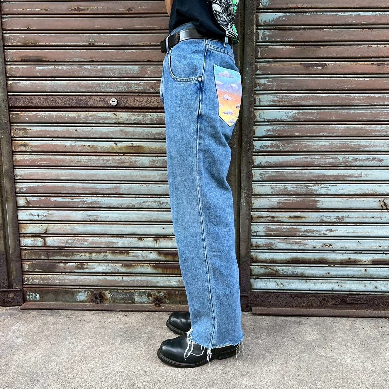 コンディション : バックポケットにペイントがされております。裾がカットされておりますが、着用に問題あるダメージはございません。