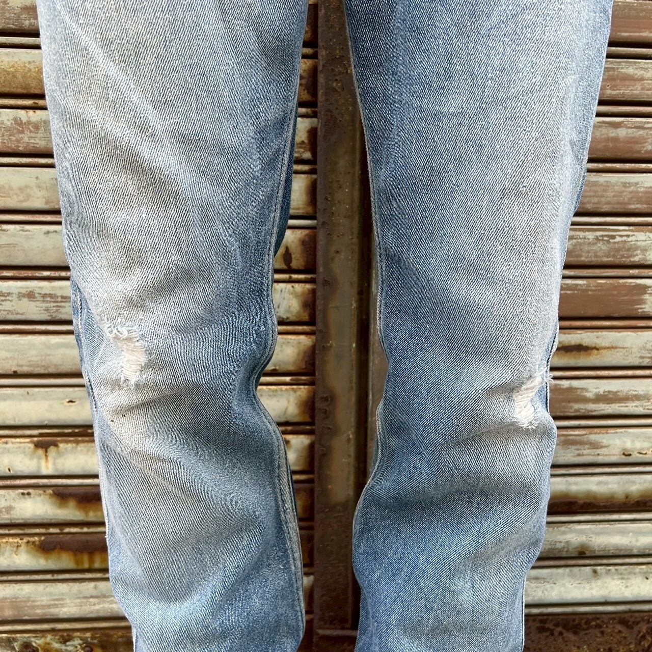 コンディション : 両膝、ヒップ、ポケット、裾にダメージ、腿に汚れがございますが、目立った傷や汚れはございません。