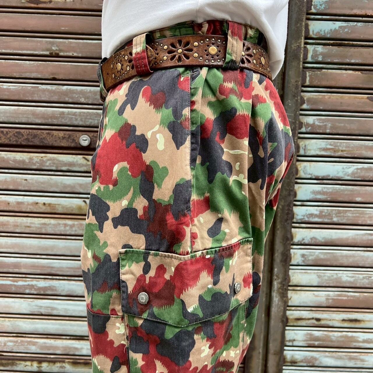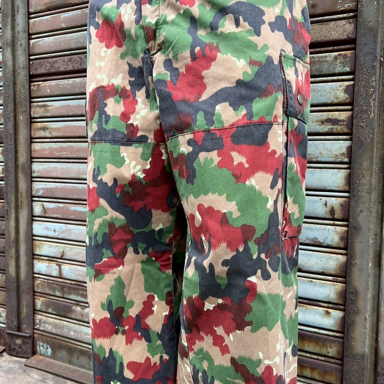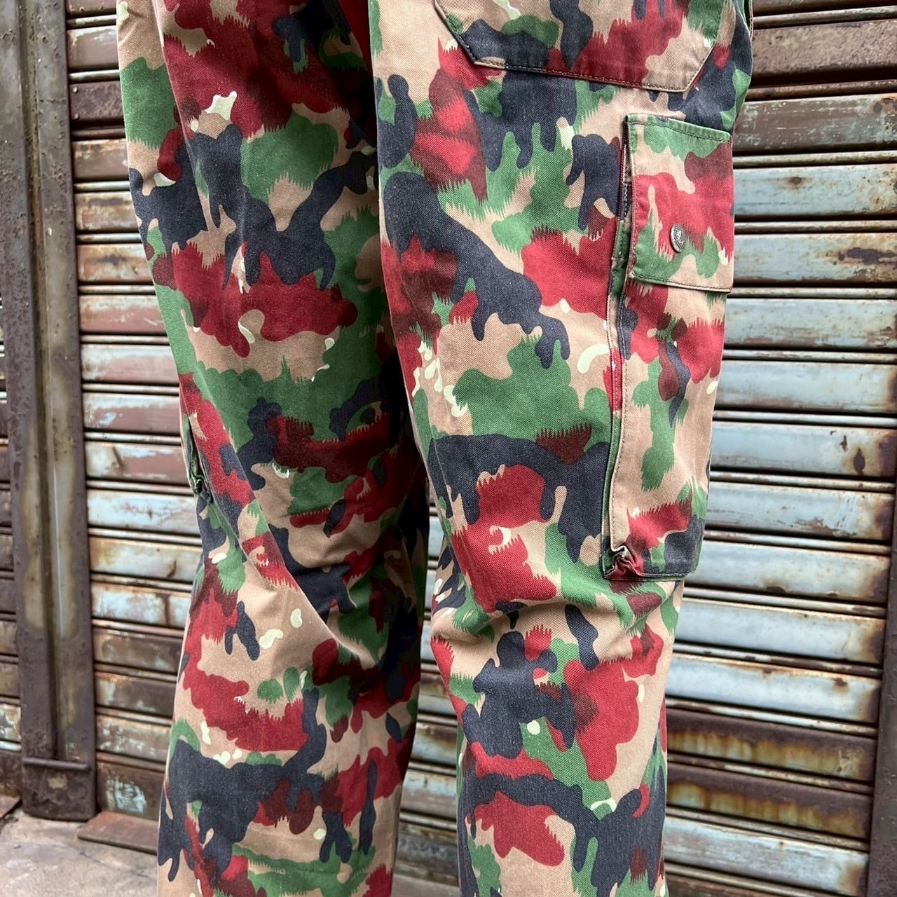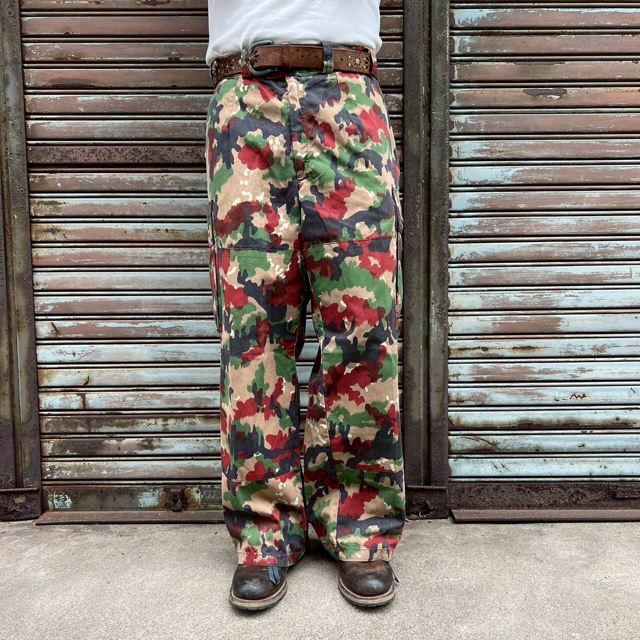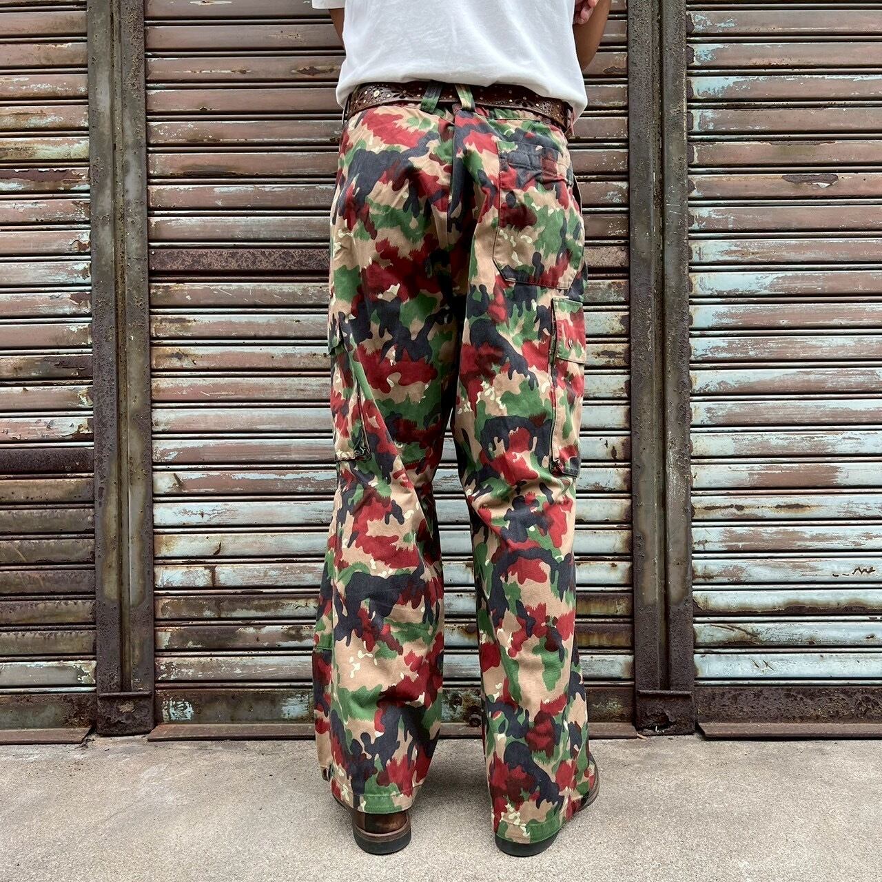 80s〜 Swiss Army スイス軍 実物 アルペンカモ カーゴ フィールドパンツ W98cm L/XL コンバット ミリタリー ピザ迷彩 ユーロ M-83 90s