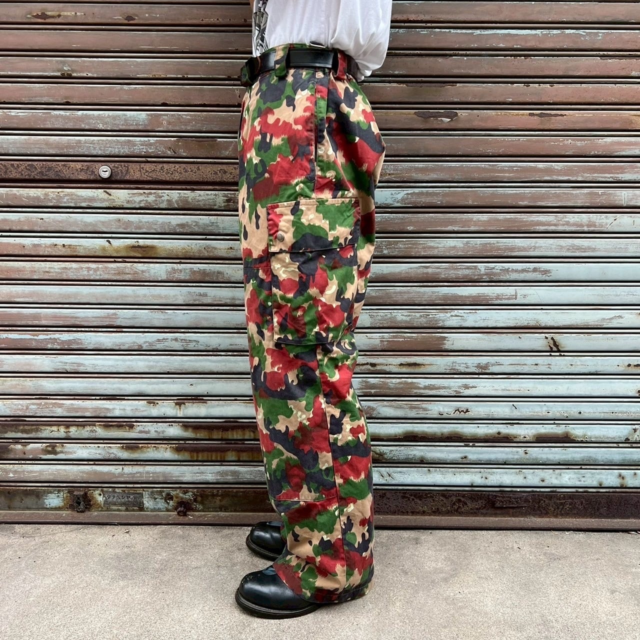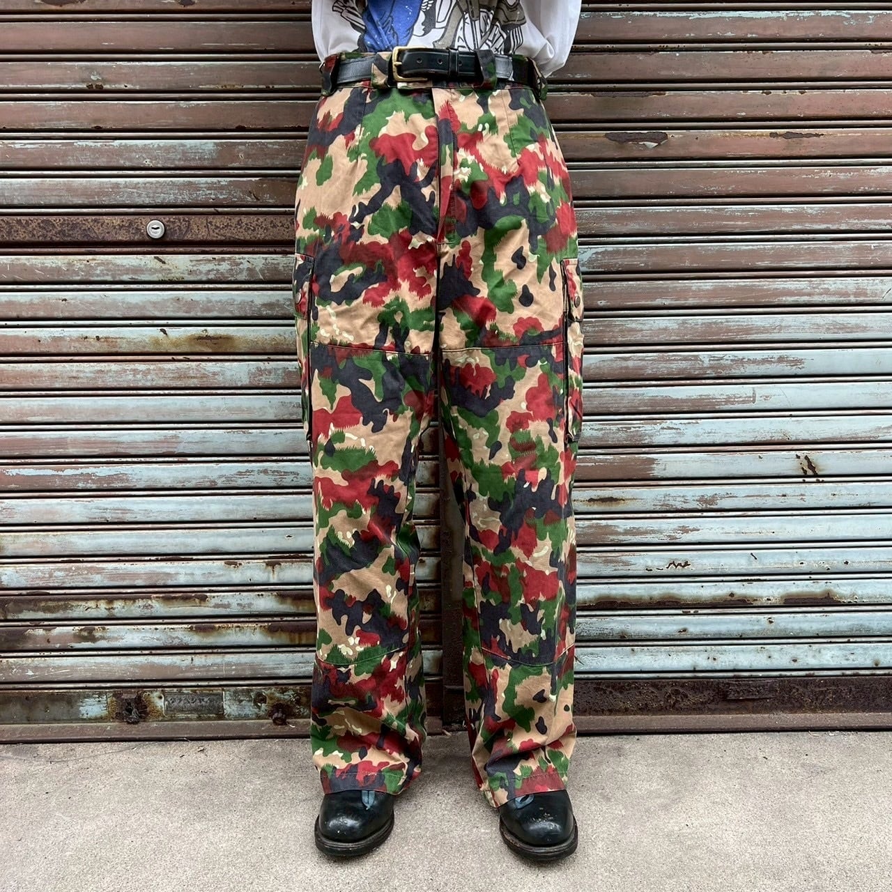 80s〜 Swiss Army スイス軍 実物 アルペンカモ カーゴ フィールドパンツ W78cm M コンバット ミリタリー ピザ迷彩 ユーロ M-83 90s