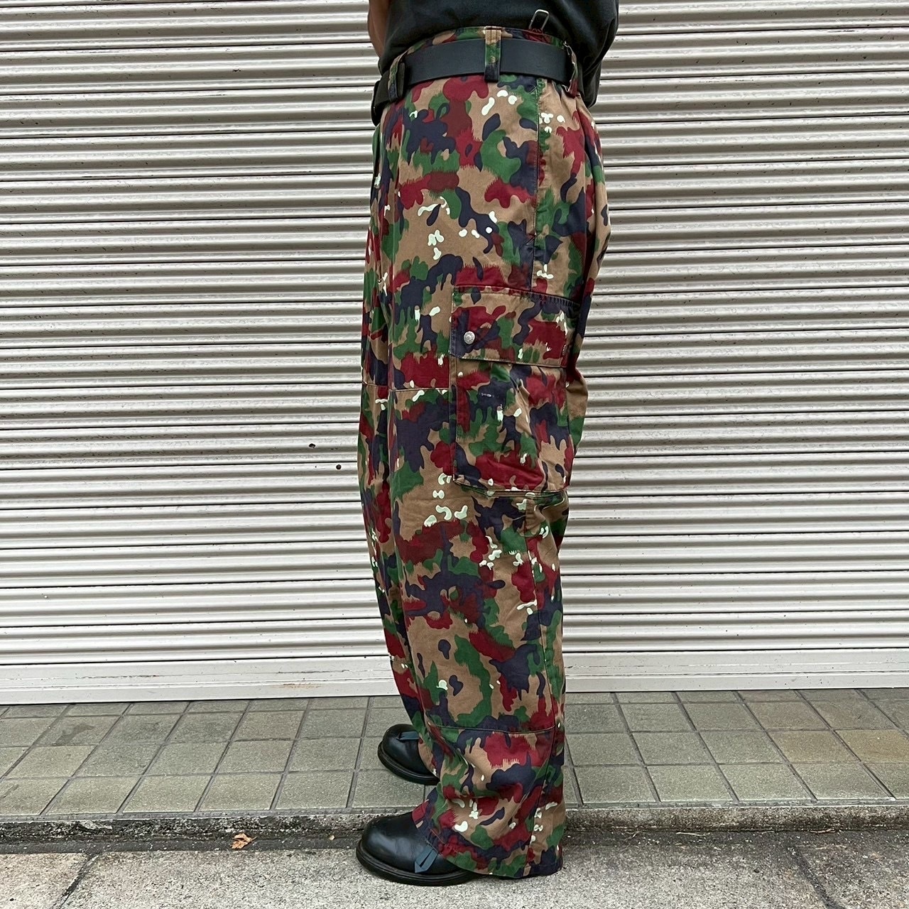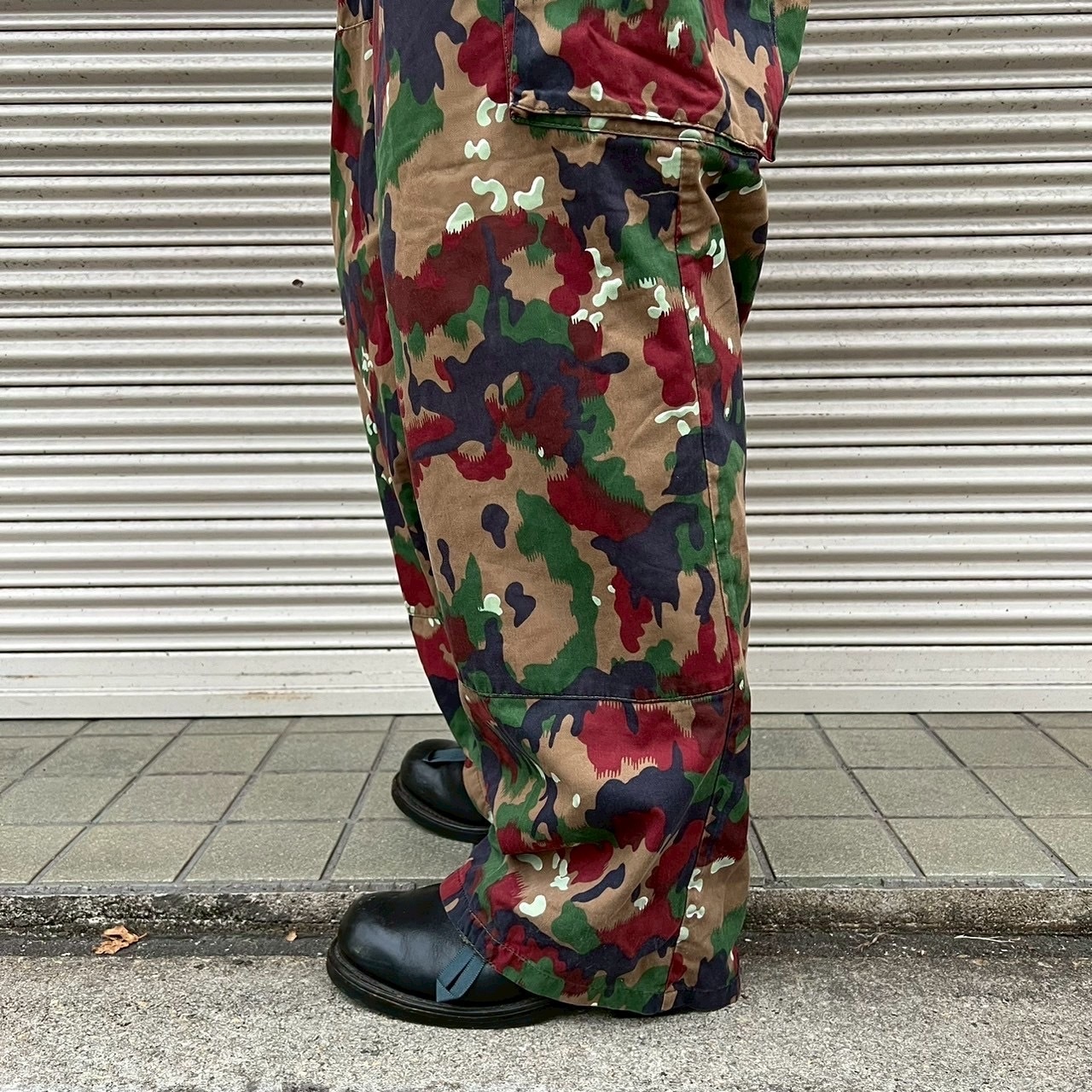 80s〜 Swiss Army スイス軍 実物 アルペンカモ カーゴ フィールドパンツ W114cm XL コンバット ミリタリー ピザ迷彩 ユーロ M-83 90s