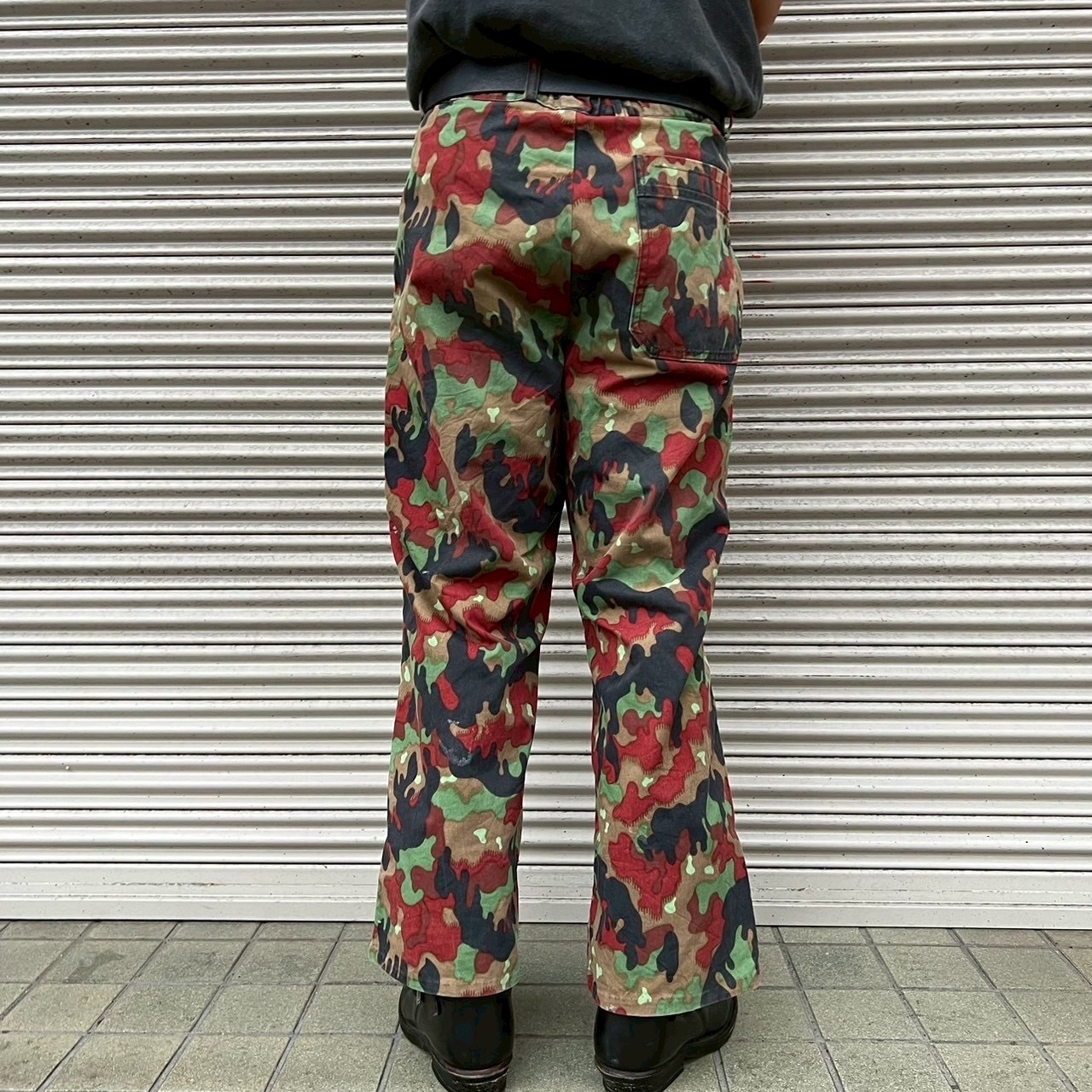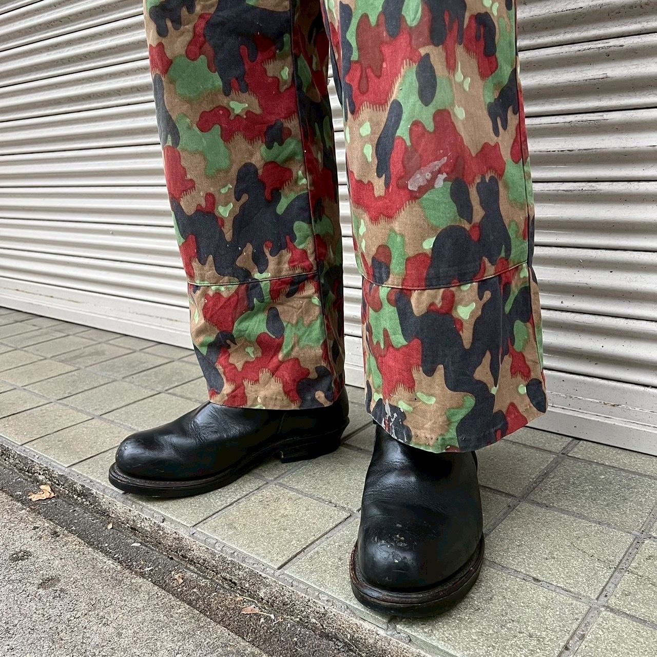 80s〜 Swiss Army スイス軍 実物 アルペンカモ カーゴ フィールドパンツ W98cm XL コンバット ミリタリー ピザ迷彩 ユーロ M-83 90s