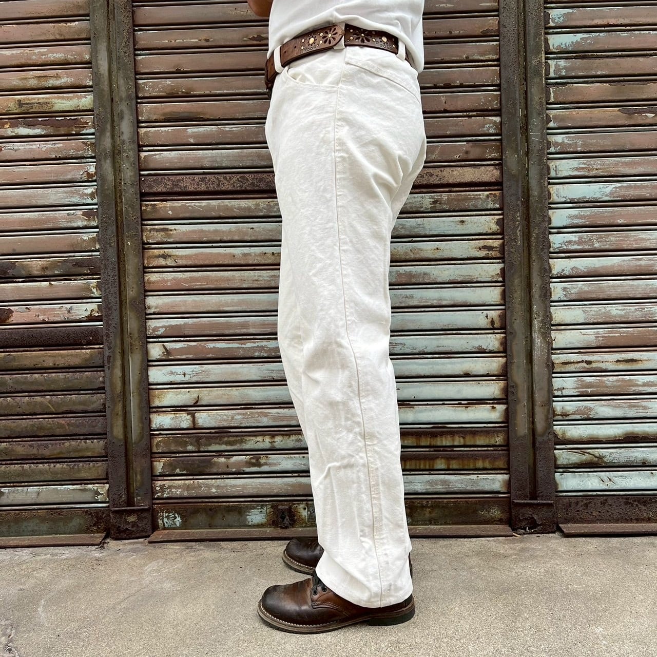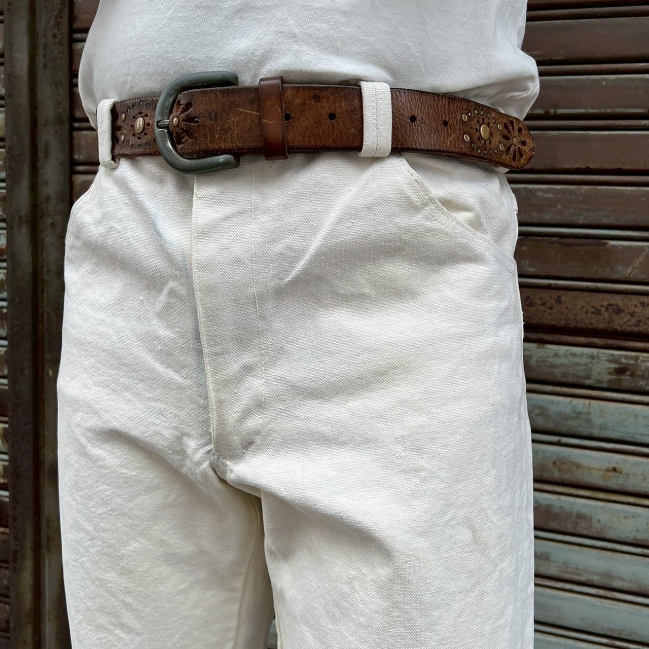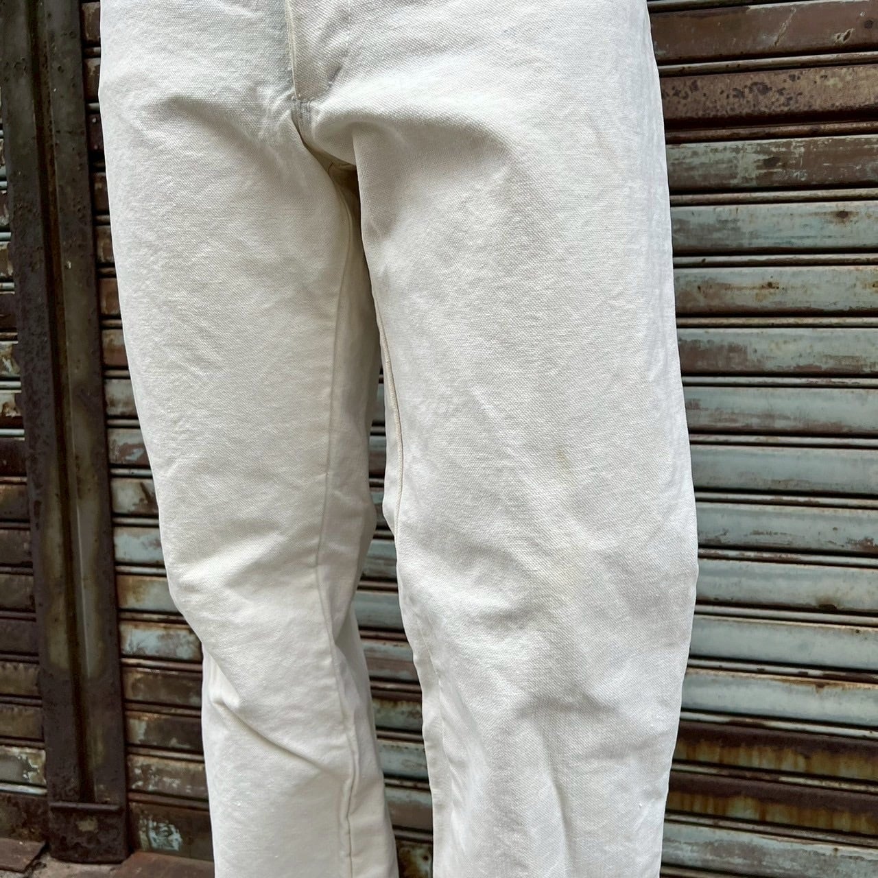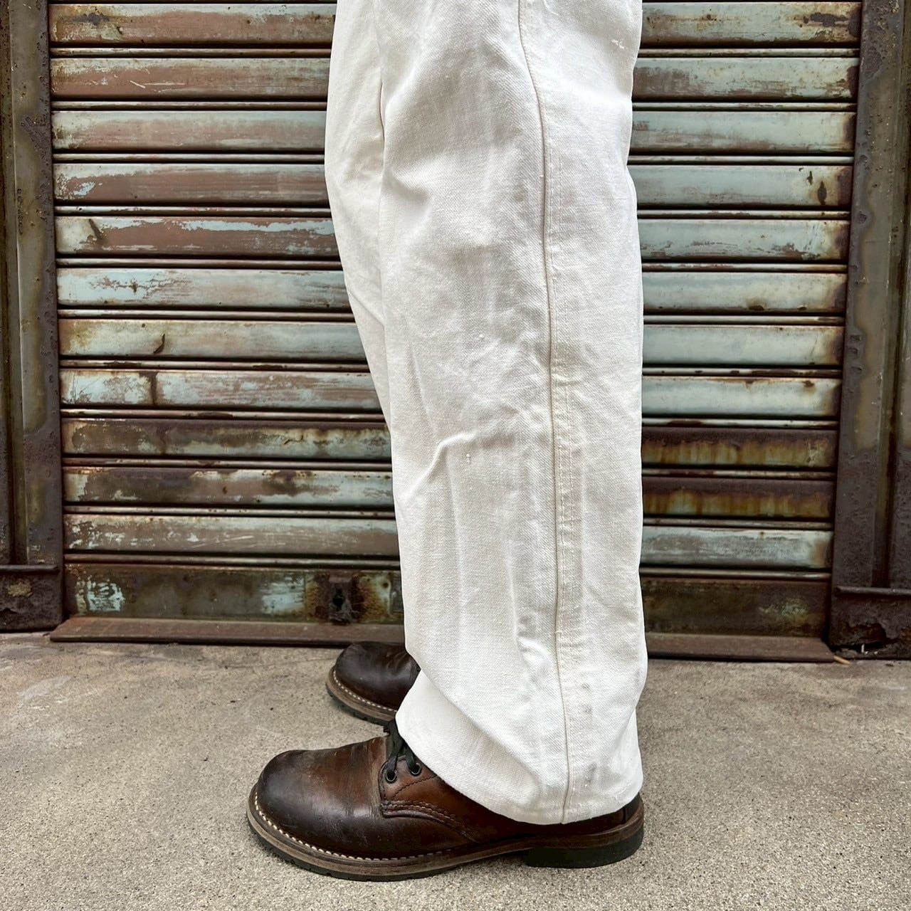 ヴィンテージ ホワイト ワークパンツ コットン W90cm L相当 白 ベージュ ジップフライ ダック地 ペインター アメカジ バイカー ワーク