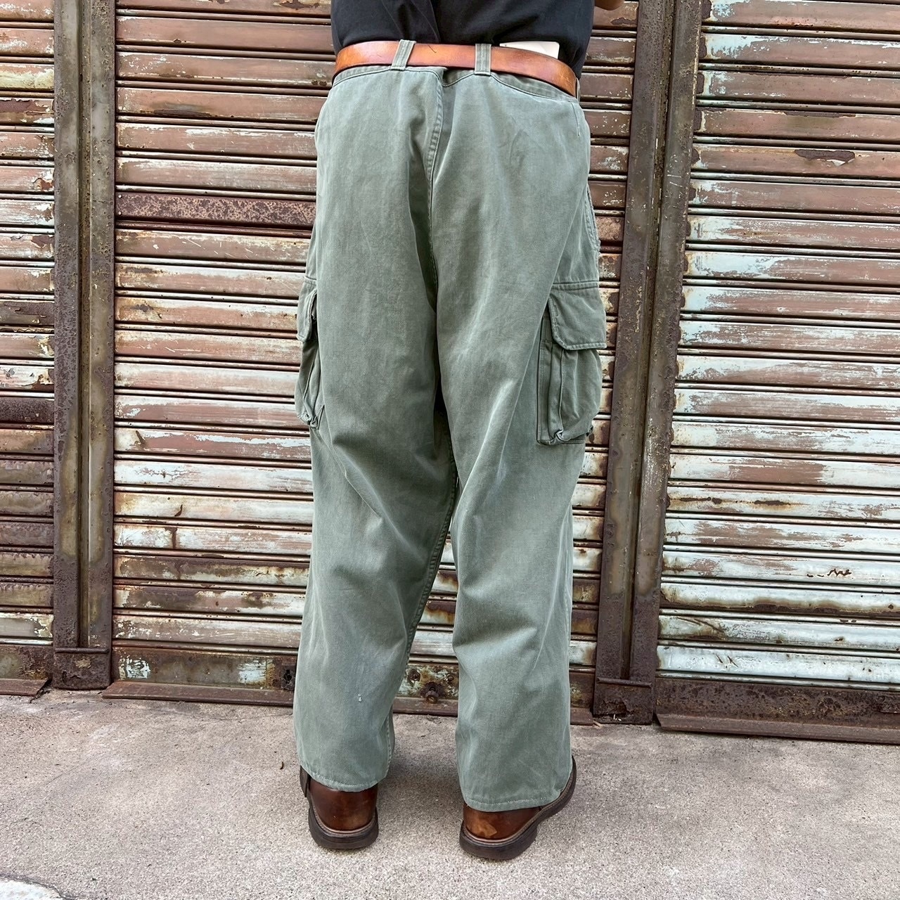 フランス軍 実物 M-64 フィールドパンツ カーゴパンツ W108cm オリーブ ユーロ ミリタリー ヴィンテージ ワークパンツ M64 M47 60s 70s