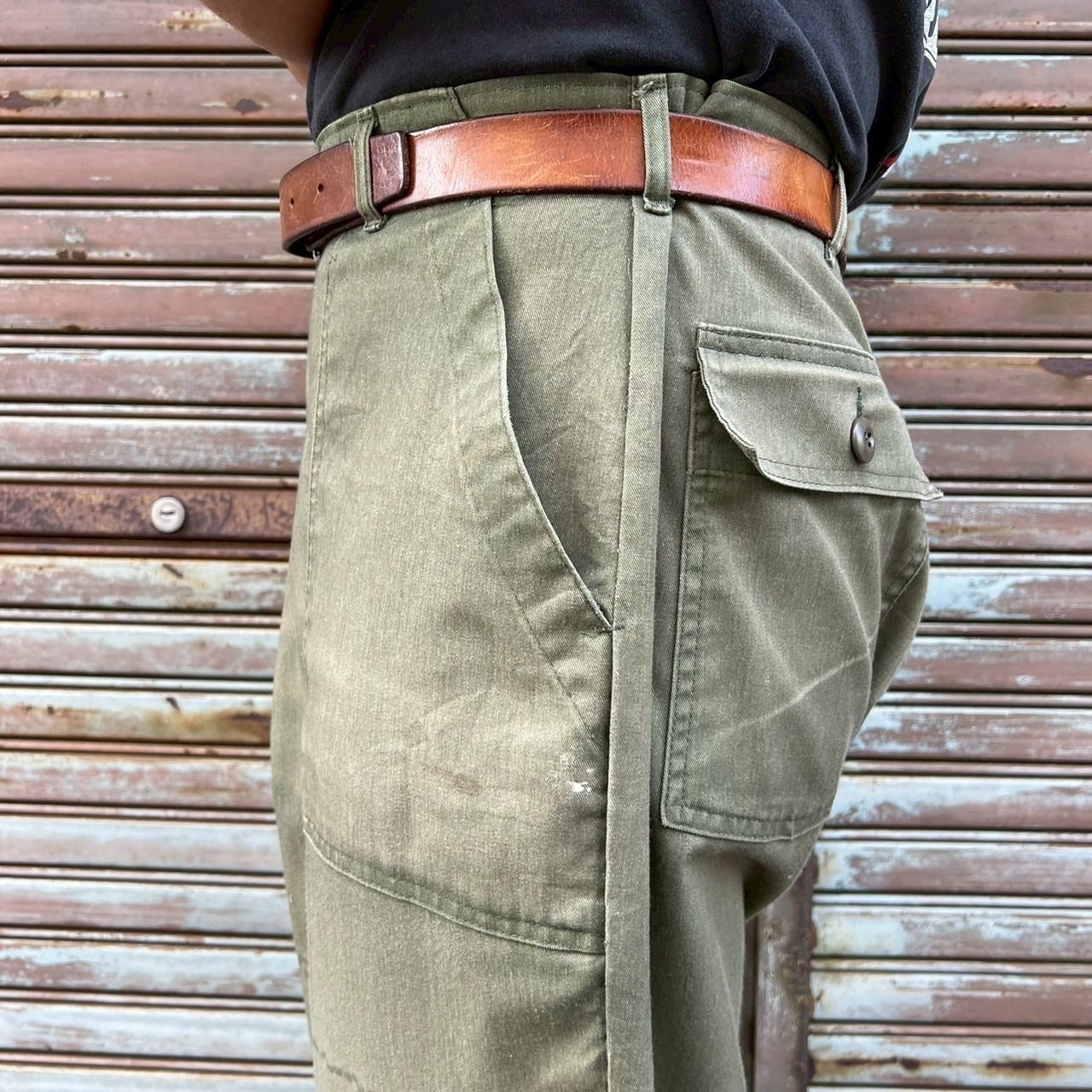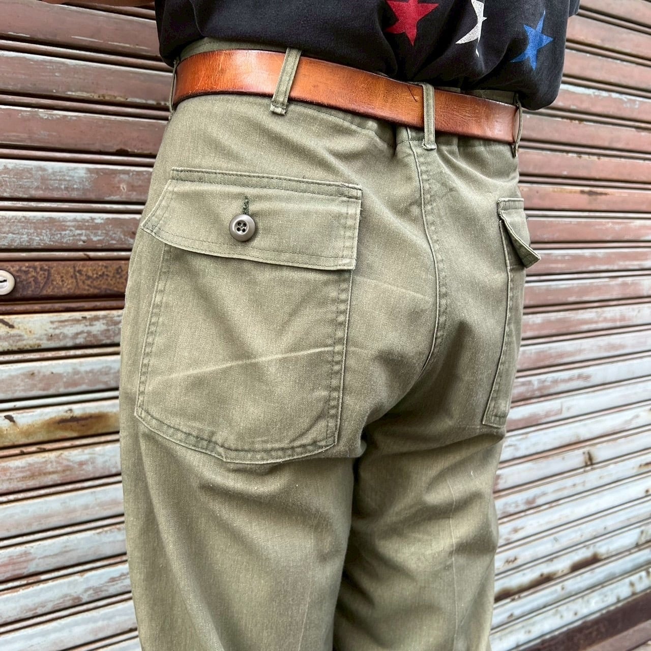 80s US Army 米軍 実物 ヴィンテージ ベイカーパンツ OG507 W42 L31 W106cm ミリタリー コットンサテン カーゴパンツ ジップフライ 70s