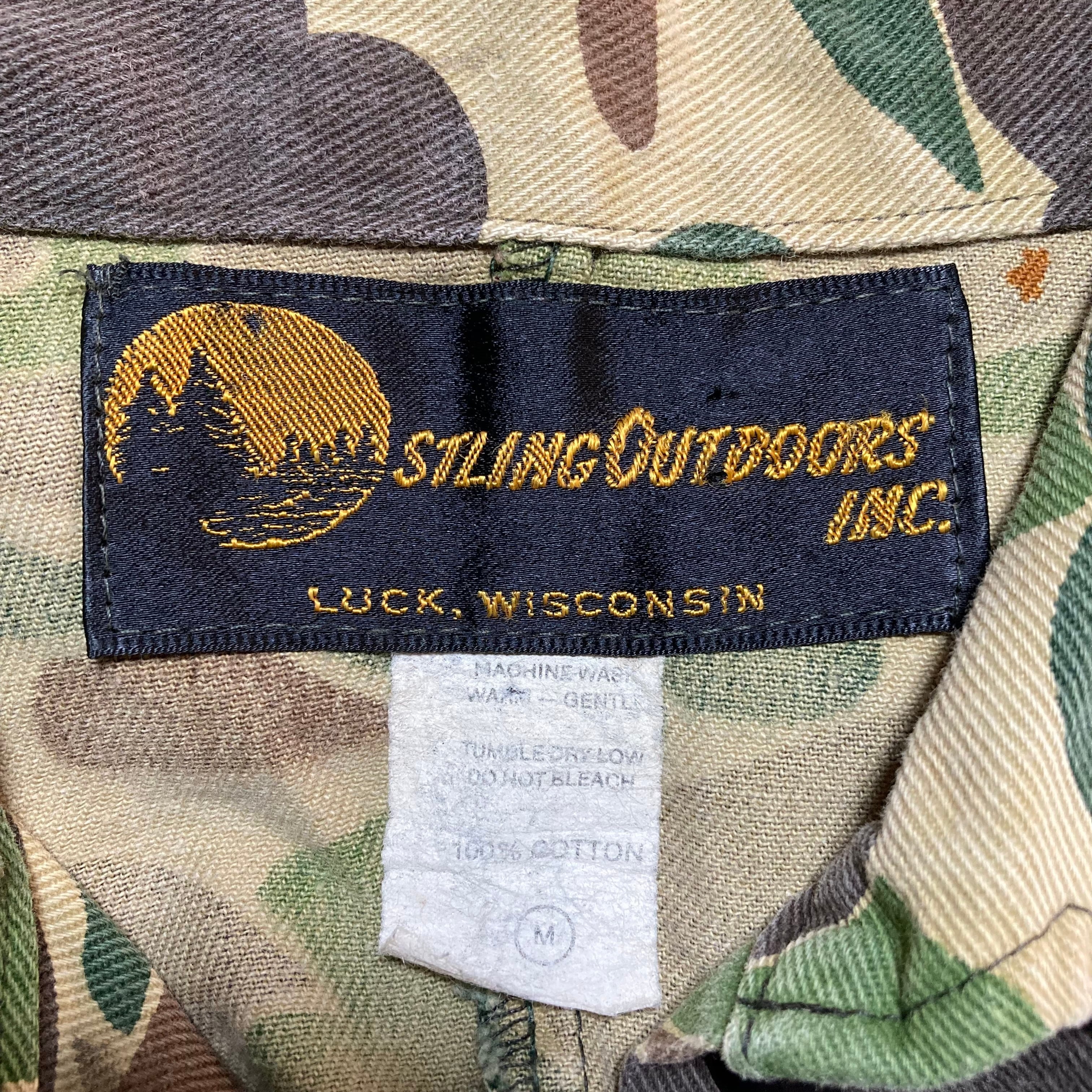 80s STLINGOUTDOORSINC ダックハンターカモ ダックハント ツナギ ハンティングスーツ オールインワン ミリタリー ヴィンテージ 米軍 M/L