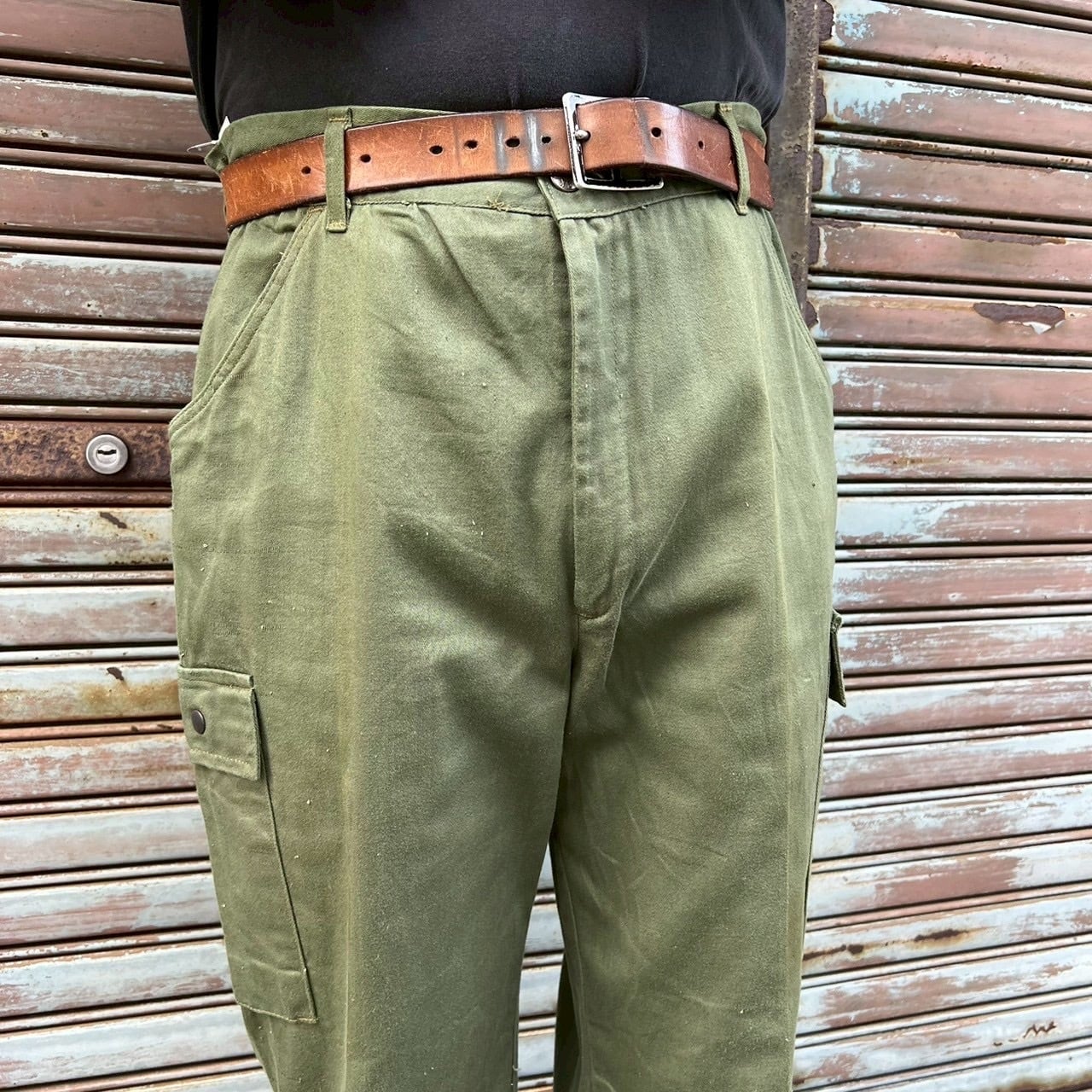 70s フレンチ ハンティングパンツ ユーロ ヴィンテージ 56 W96cm XL カーゴパンツ オリーブ ミリタリー ワーク カーゴ フランス軍 80s