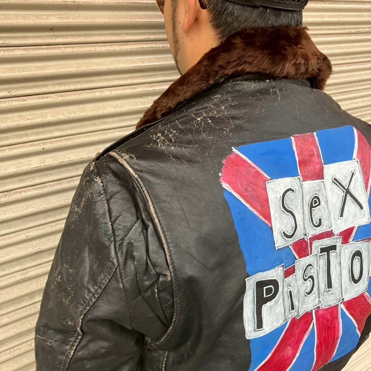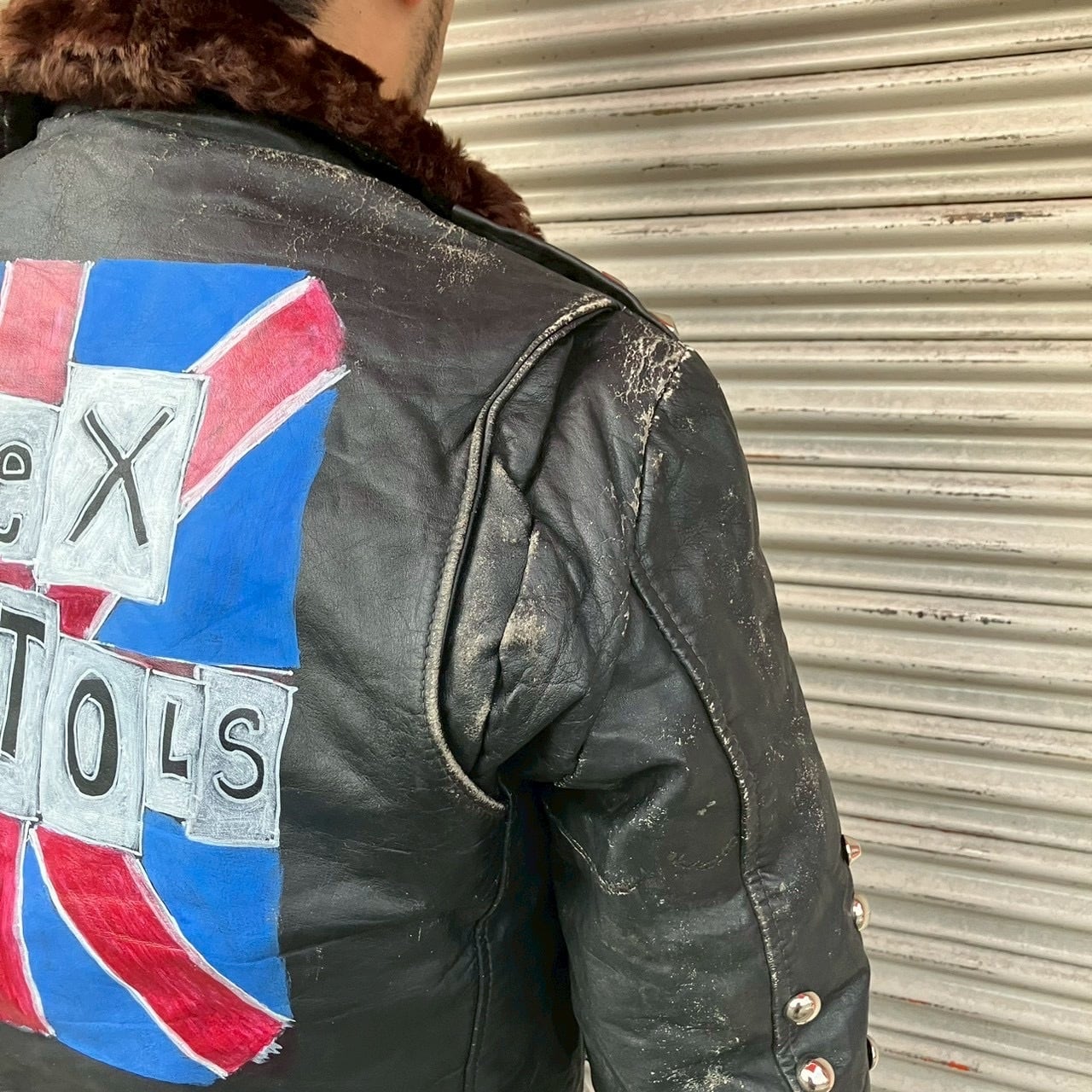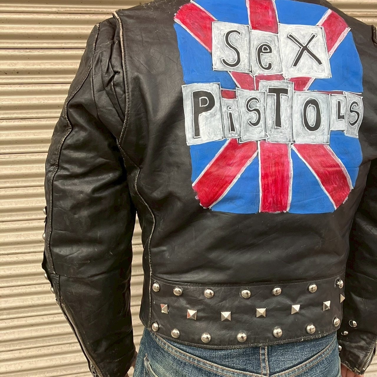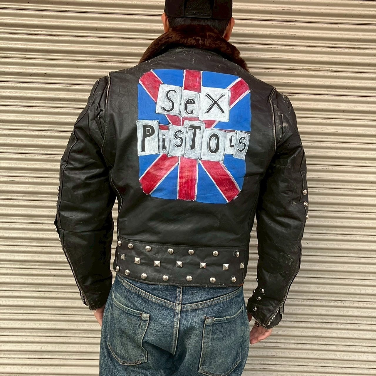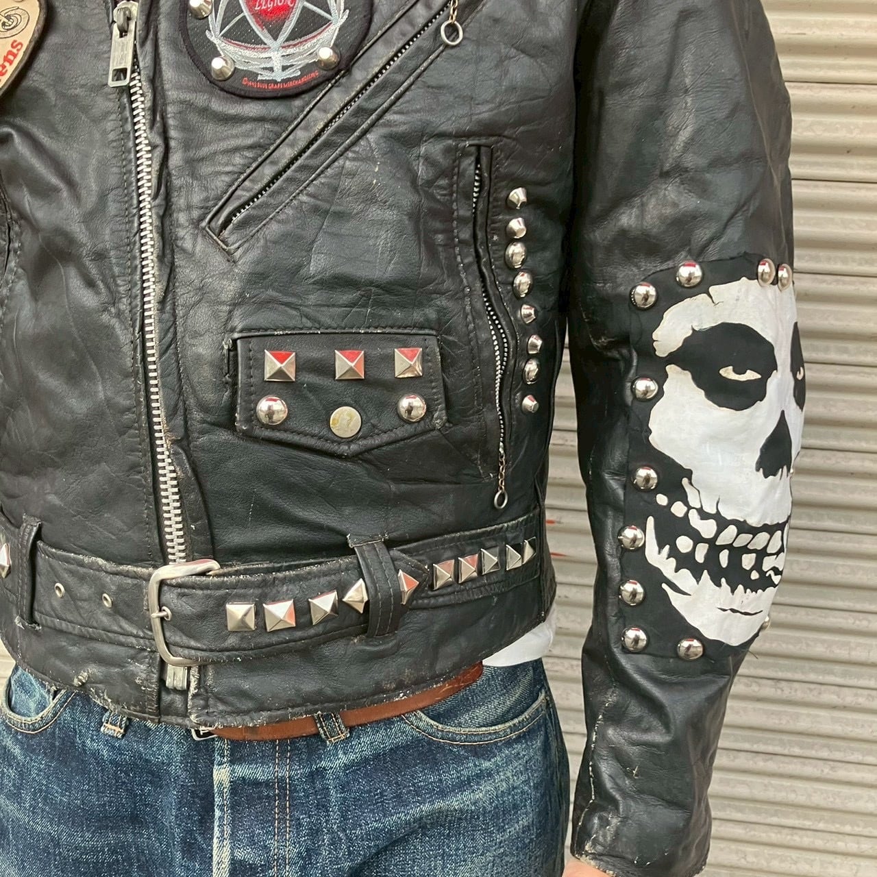 全面にスタッズが打ち込まれ、背面にはSex Pistols × Union Jackのペイント、右袖にはThe Misfitsのスカルフェイスが大胆に描かれた、圧倒的な存在感を放つ一着。