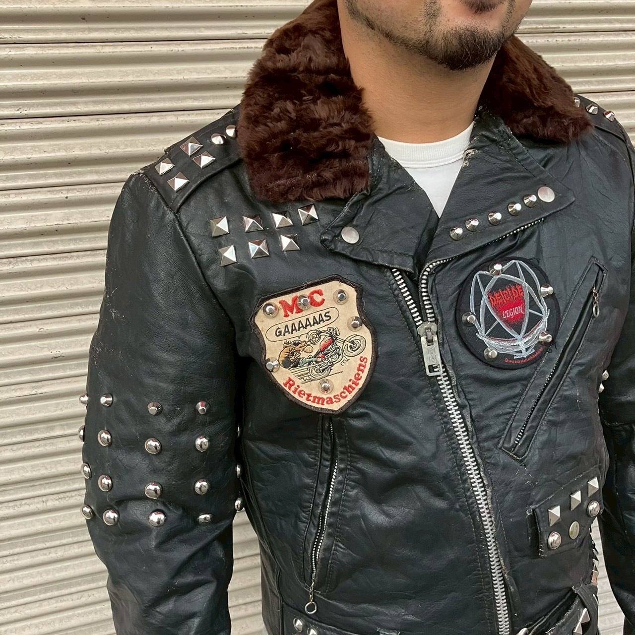 レザーベースの質感は程よくエイジングし、70〜80年代のパンクカルチャーをそのまま纏ったような雰囲気に仕上がっています。