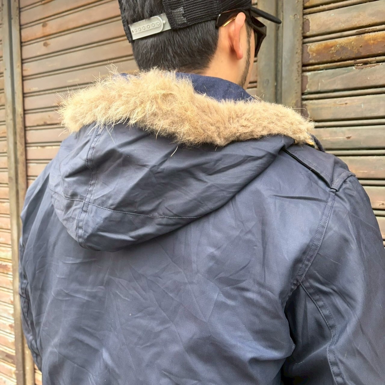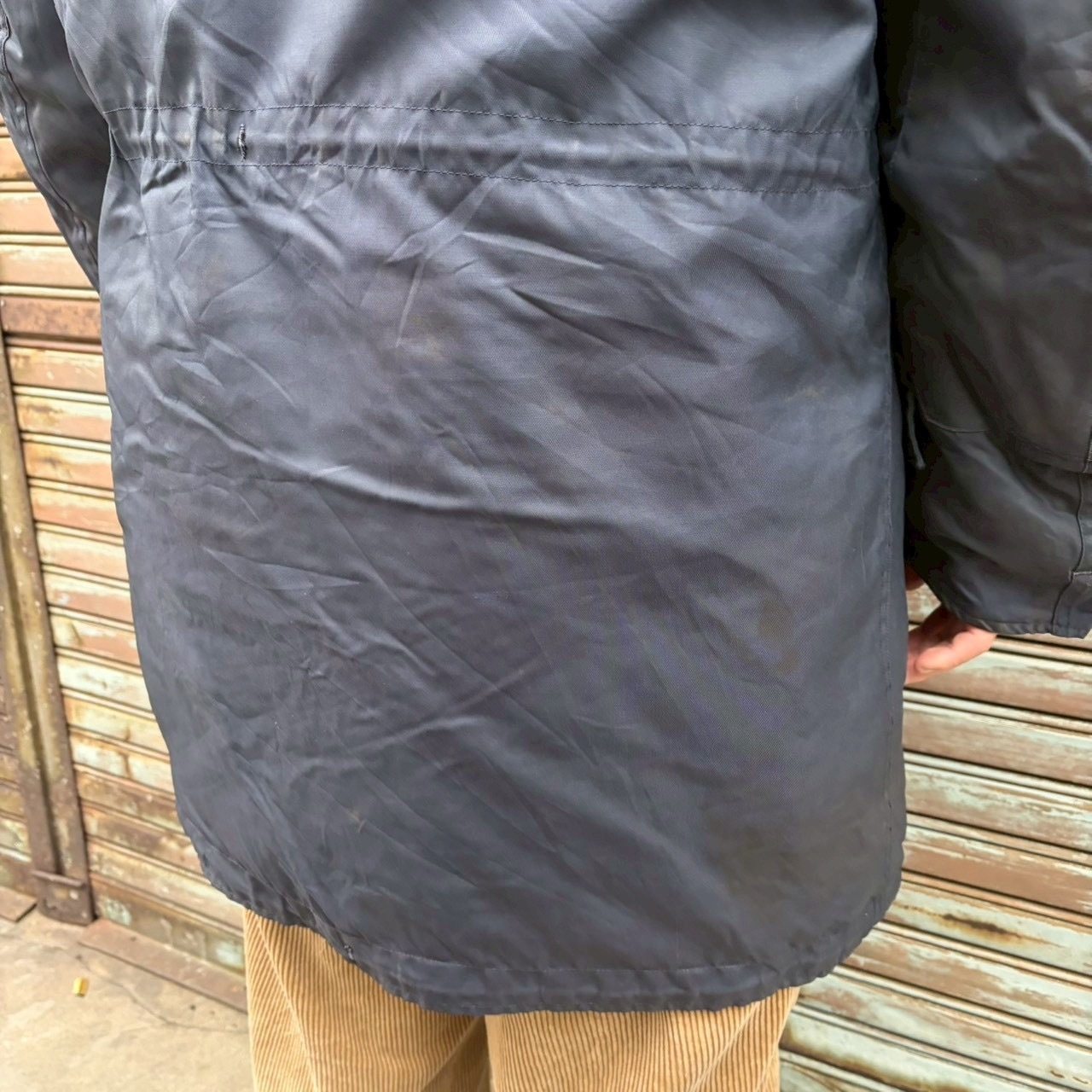 コンディション : ウエスト部分、袖に黒ずみ、ファーに破れ、ボタンホールにダメージ、肩にリペア跡がございますが、着用に問題あるダメージや破損ありません。