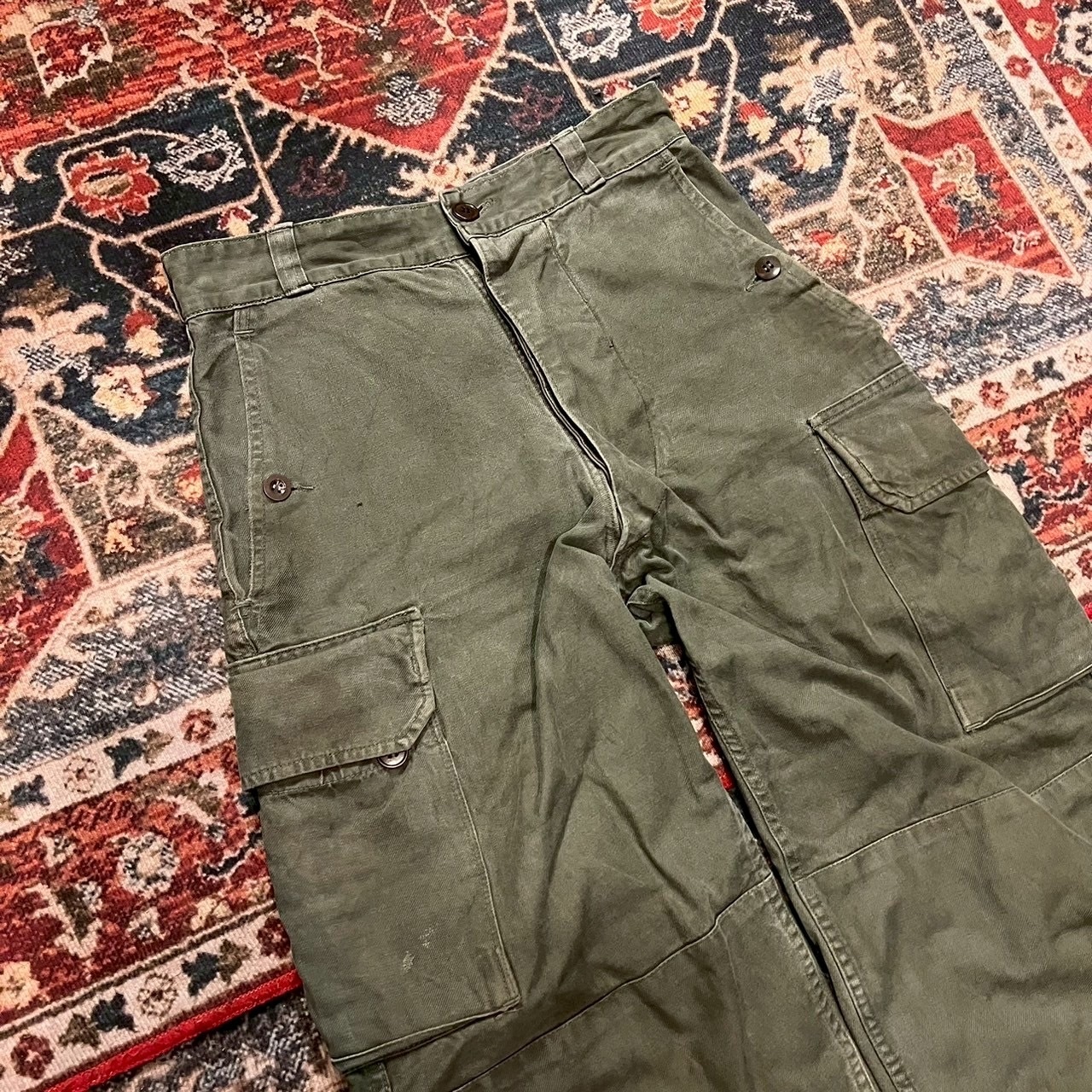 フランス軍 M-64 フィールドパンツ カーゴパンツ 76L W74cm オリーブ ユーロ ミリタリー ヴィンテージ ワークパンツ M64 M47 S/M 60s 70s