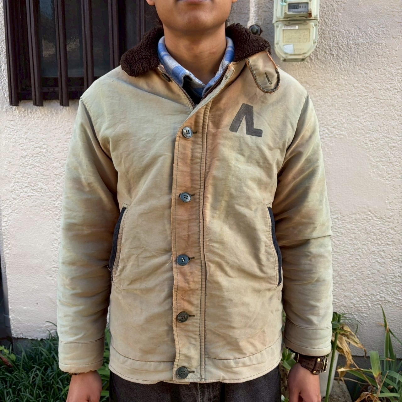左胸には当時の個体ならではのステンシルが残り、ミリタリーアイテムとしてのリアルな雰囲気を感じられます。