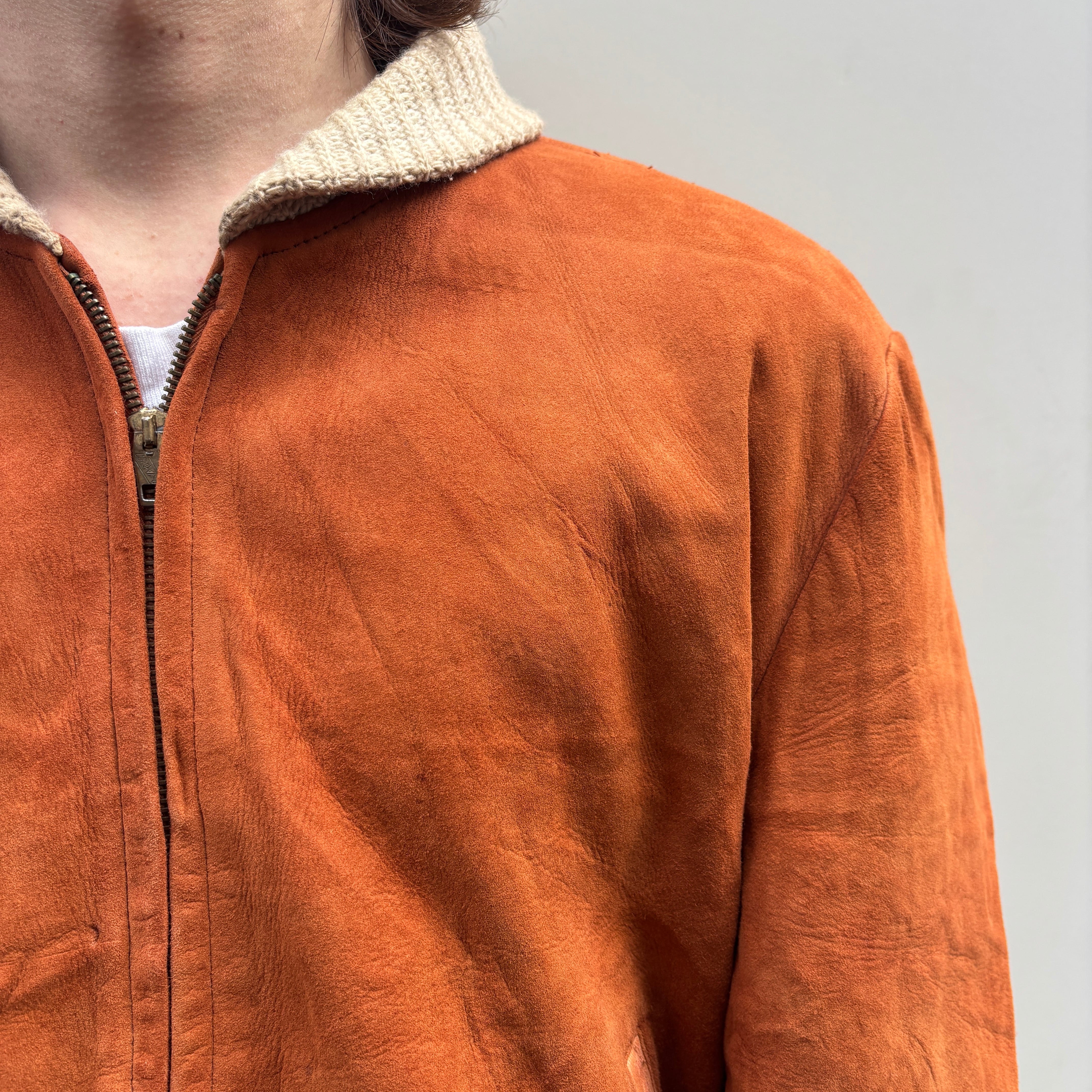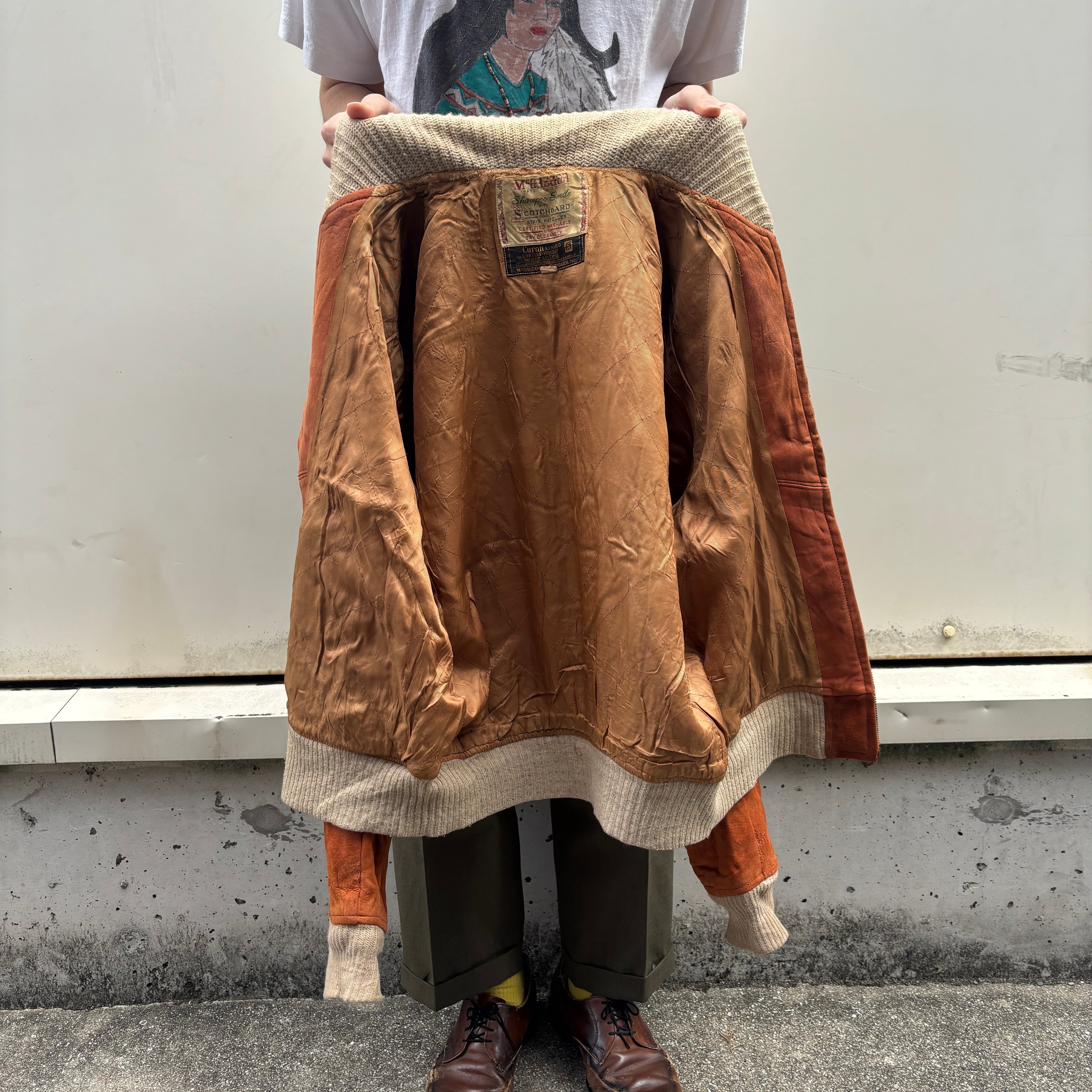 50s USA製 McGregor マクレガー レザー スウェード スポーツジャケット 44表記 ヴィンテージ ヘチマリブ襟 ショールカラー オレンジ 60s