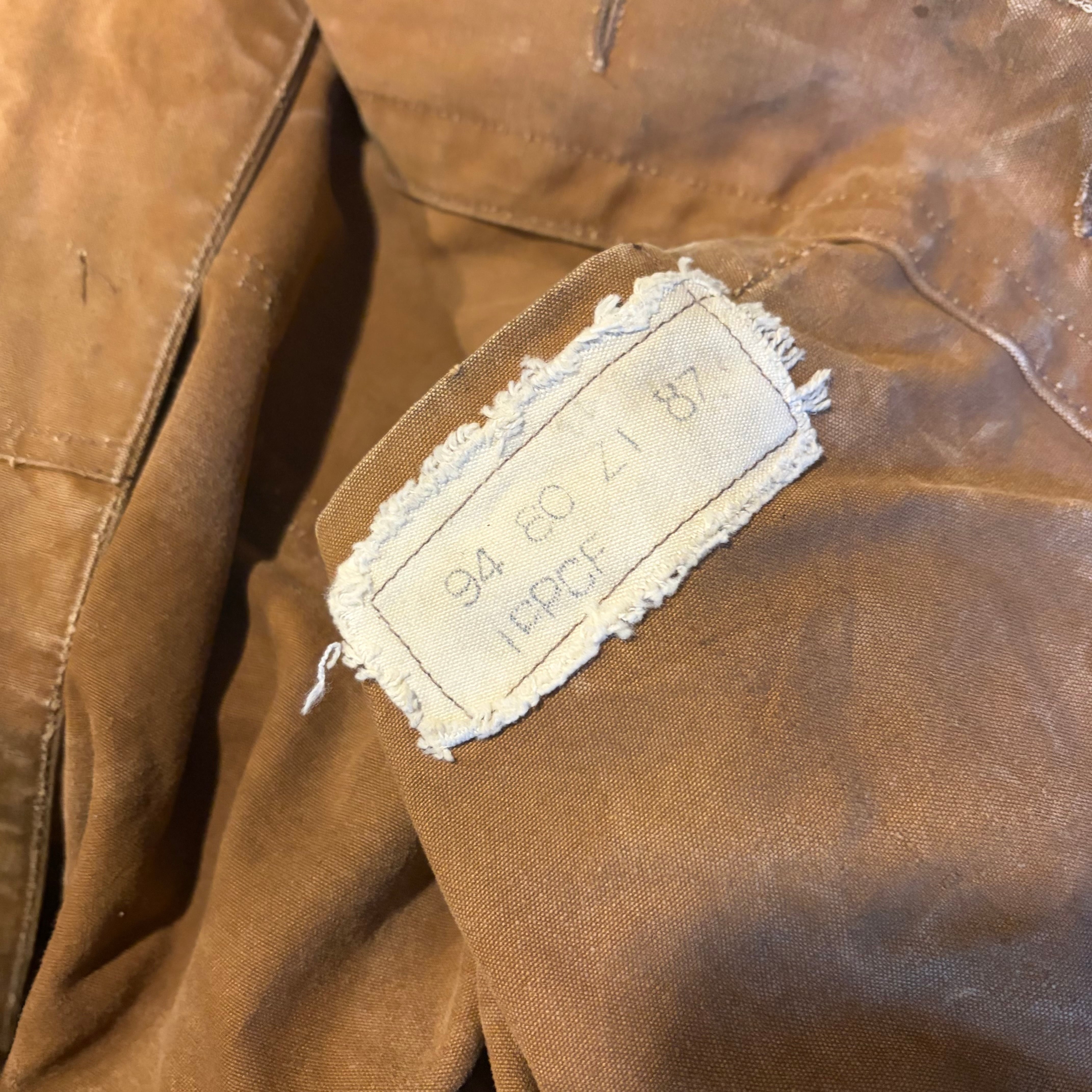 コンディション : 全体的に大きな汚れ、袖にダメージ、フェード、第二ボタンの欠損がございますが、着用に問題あるダメージはございません。
