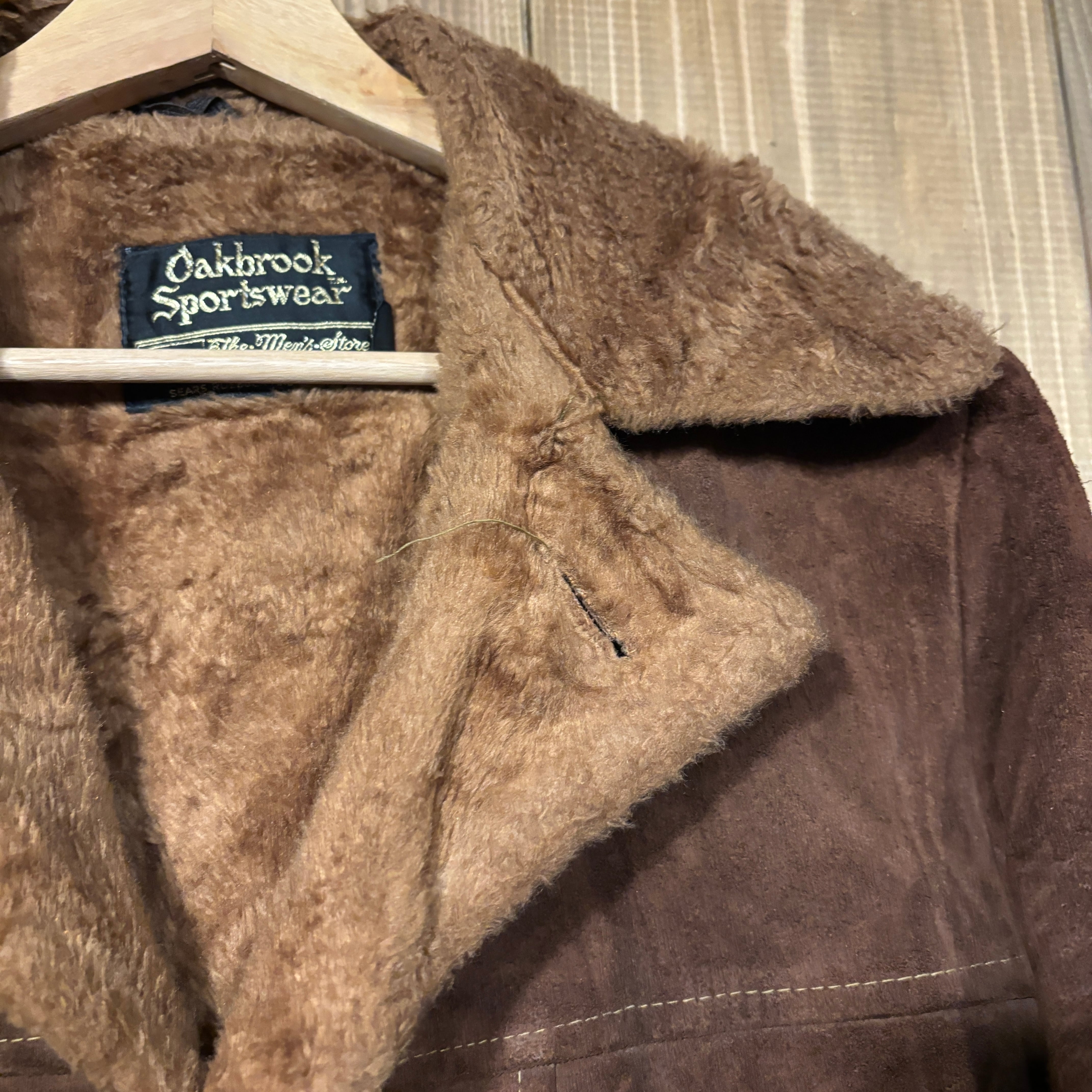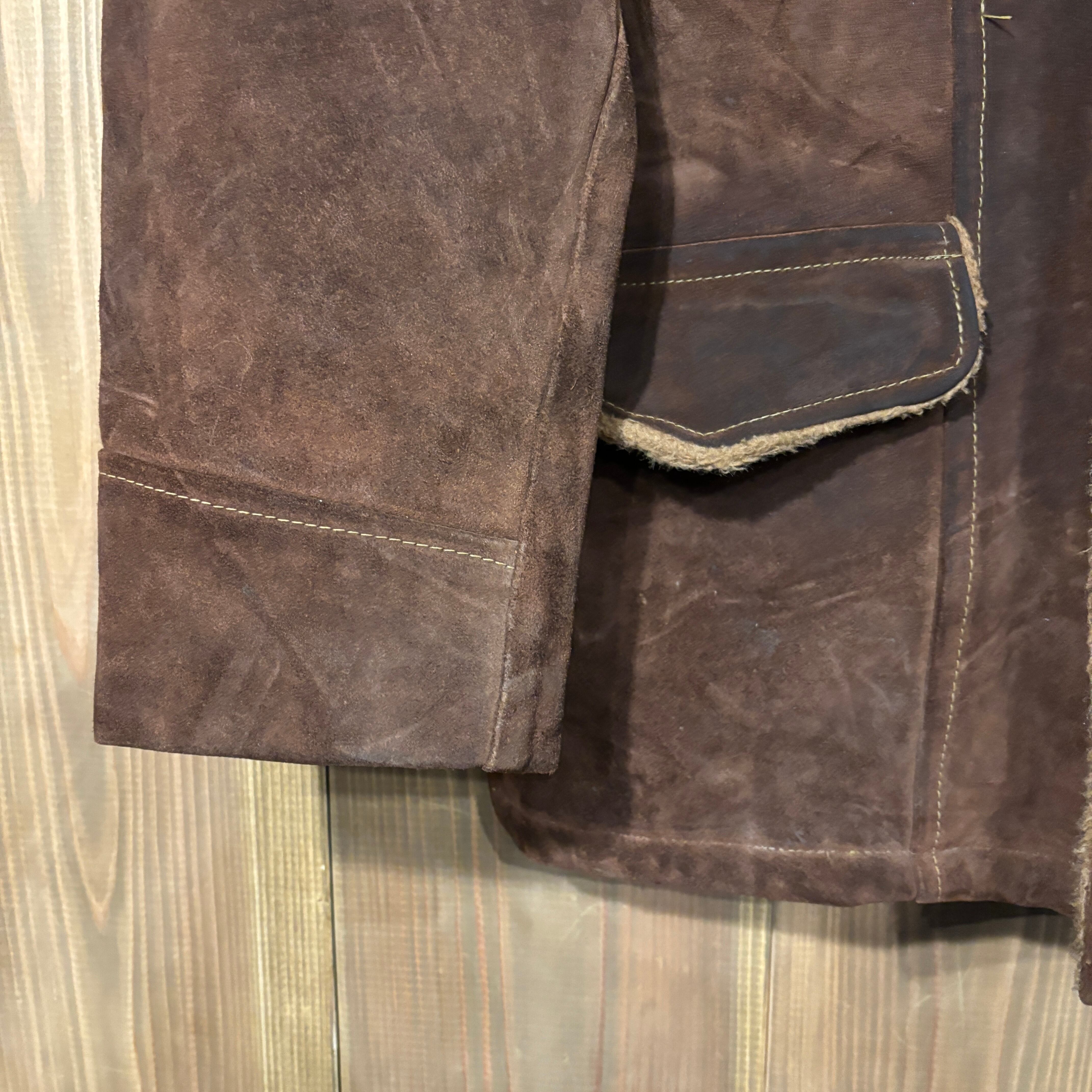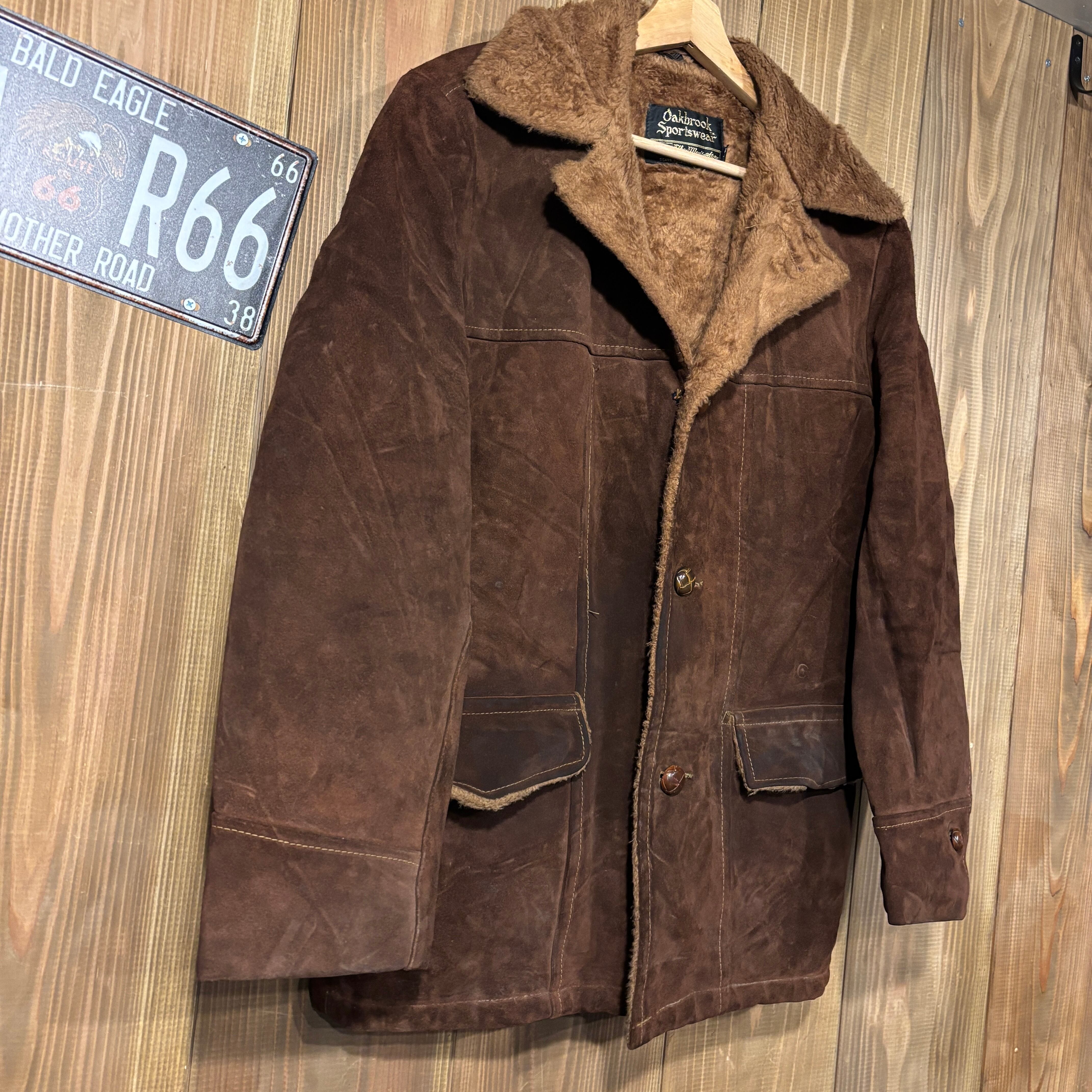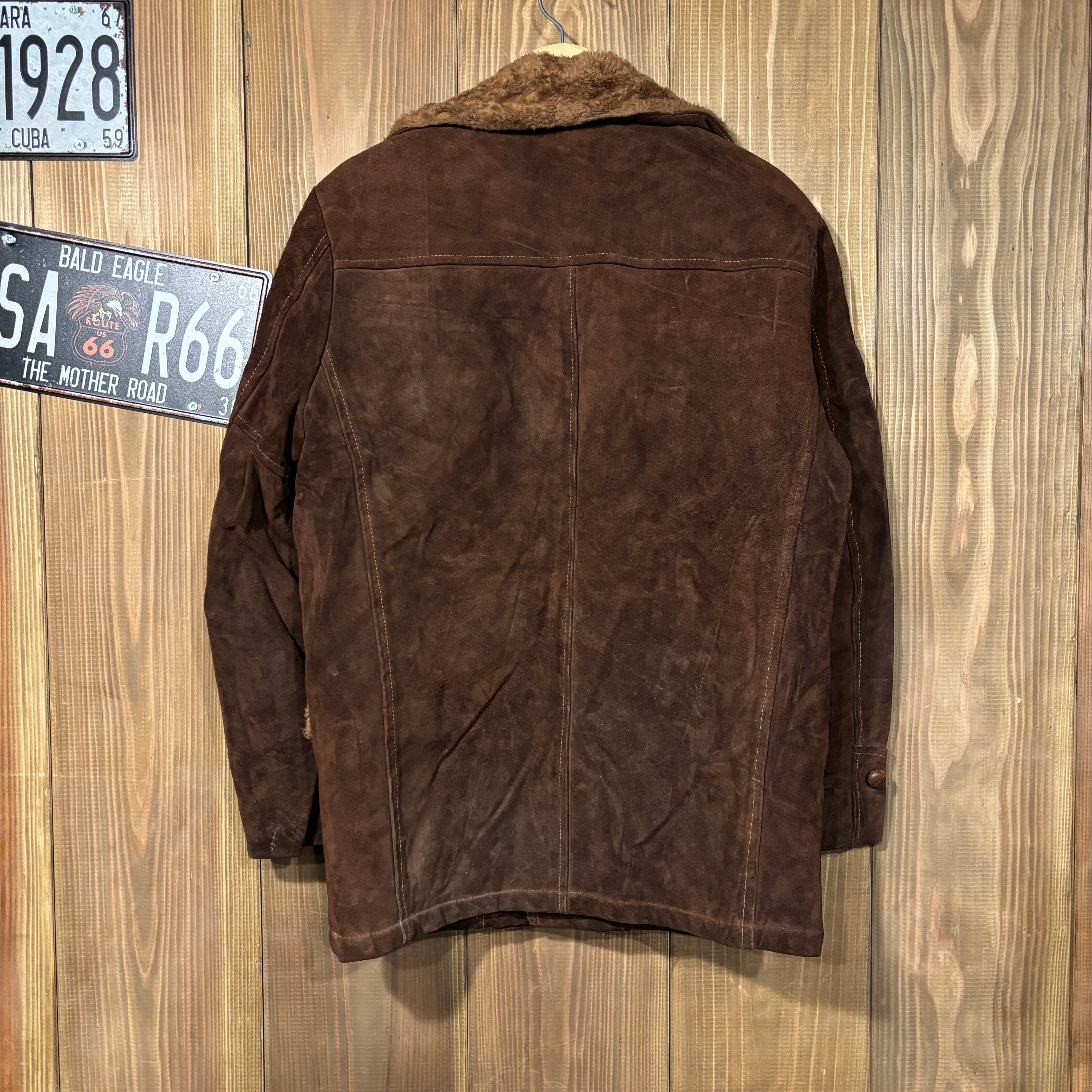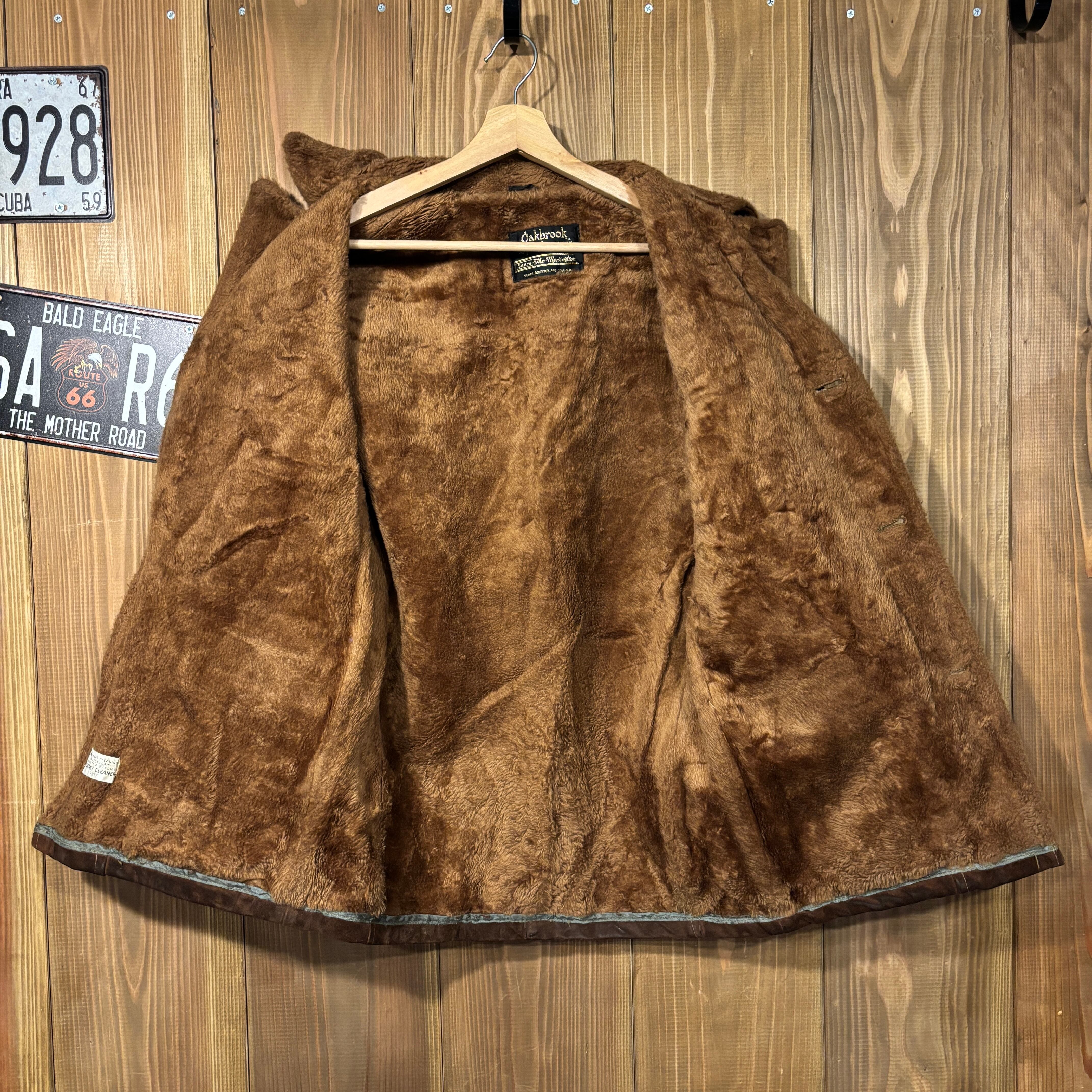 60s USA製 シアーズ SEARS Oakbrook Sportswear スウェード レザー ボア ジャケット ブラウン ヴィンテージ 38 M ランチジャケット 70s