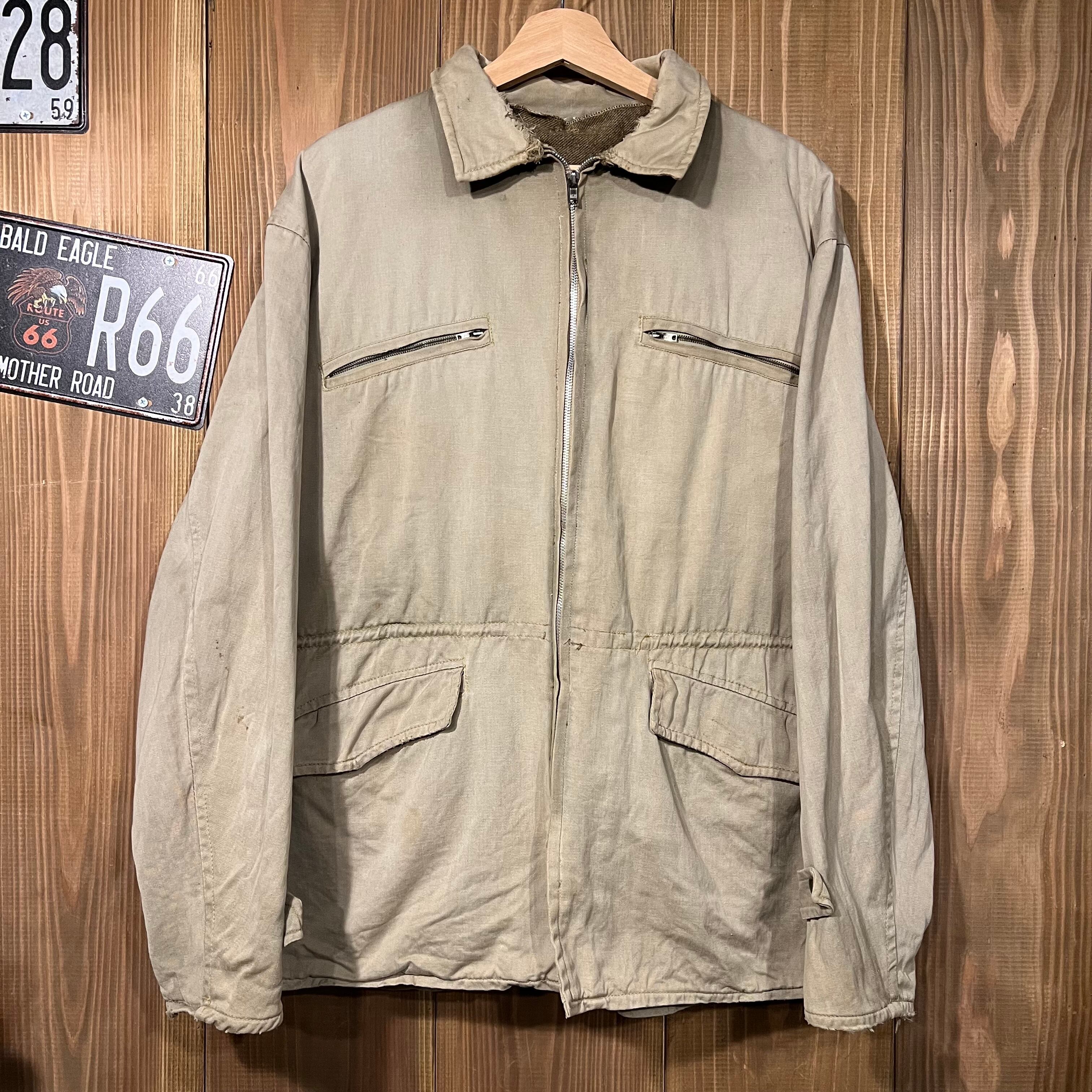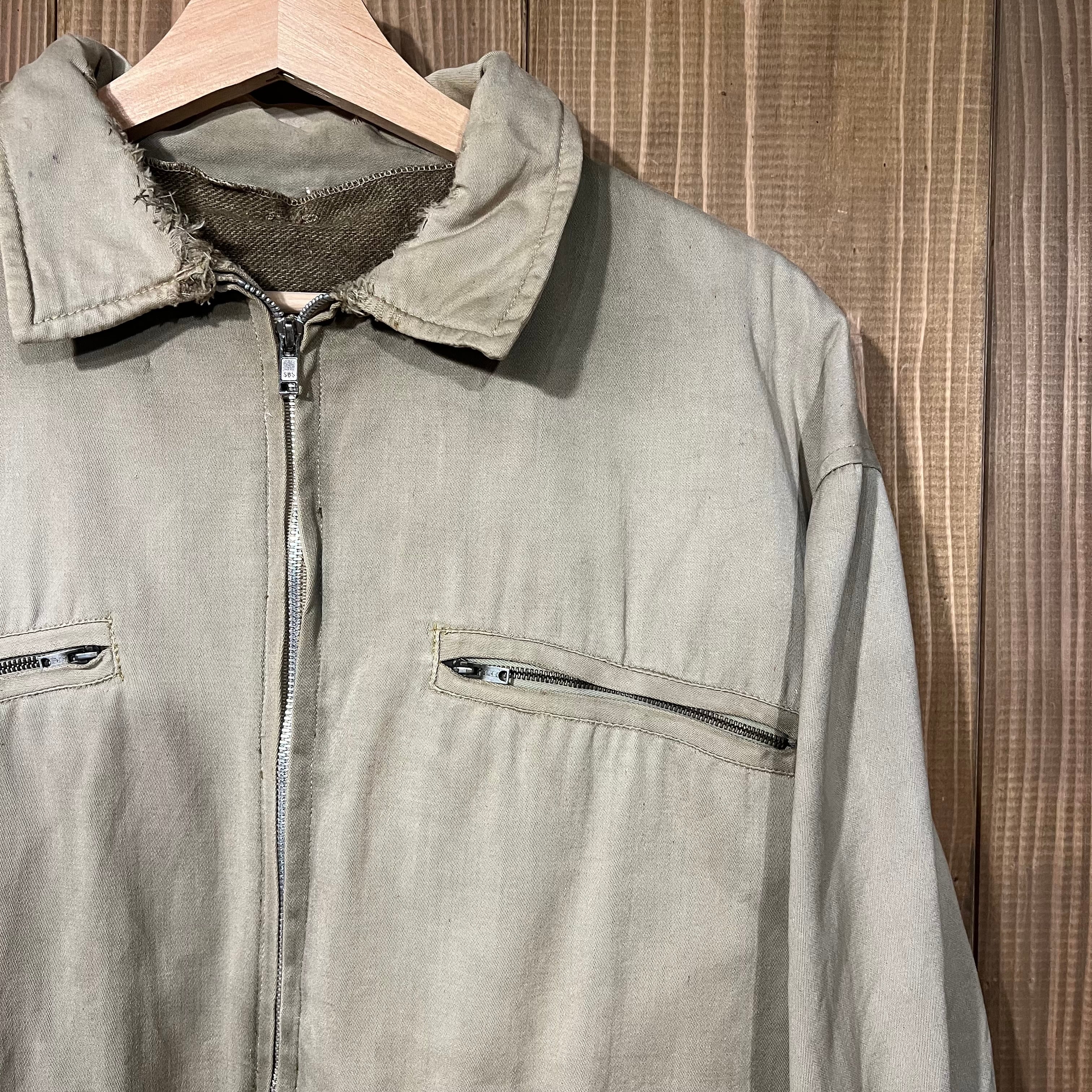 40s〜50s French Vintage Work Cotton Jacket フランスヴィンテージ ワーク コットンジャケット ベージュ ミドル丈 八の字ジップ ライナー